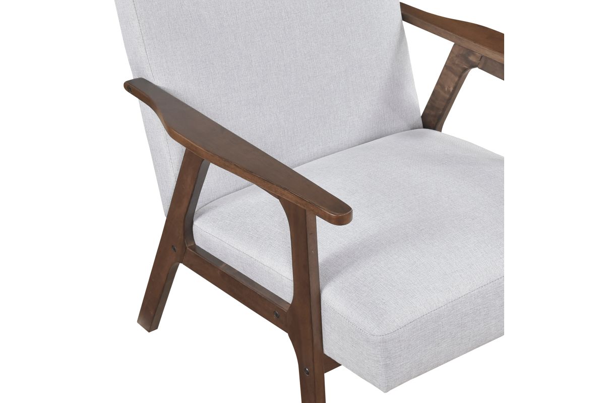 Add a touch of timeless elegance to your living space with this Mid-Century Modern Wood Arm Accent Chair. Featuring a classic design with clean lines and a warm walnut finish on the solid wood frame, this chair seamlessly blends vintage charm with contemporary style. The soft, textured linen fabric upholstery in a neutral tone complements any decor, while the generously cushioned seat and back provide exceptional comfort. Perfect for creating a cozy reading nook, adding a stylish accent to your living room, or enhancing your office space, this chair offers both aesthetic appeal and comfortable seating.