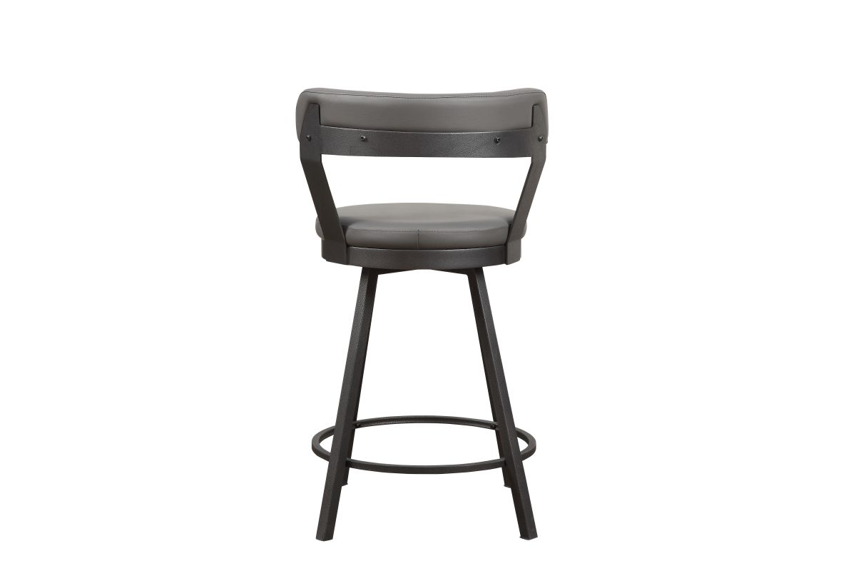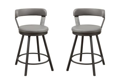 Wood and metal are combined to create the modern style of the Tempa Collection. Metal Framing supports the table and creates the profile in the casual dining table. Rich oak veneer wood top has been given a burnished finish to complement the grey metal frame. Coordinating swivel counter height chair is also avaialble. Sold in a set of two.
