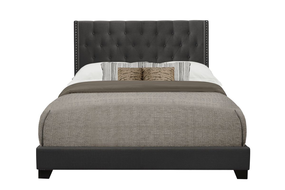 Queen Bed With Dark Grey Fabric