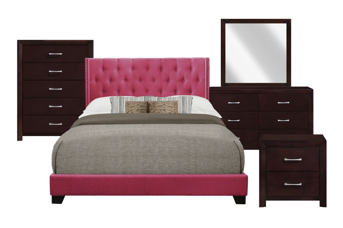 - Wing back design, Button tufted diamond back accents, Nailhead trim