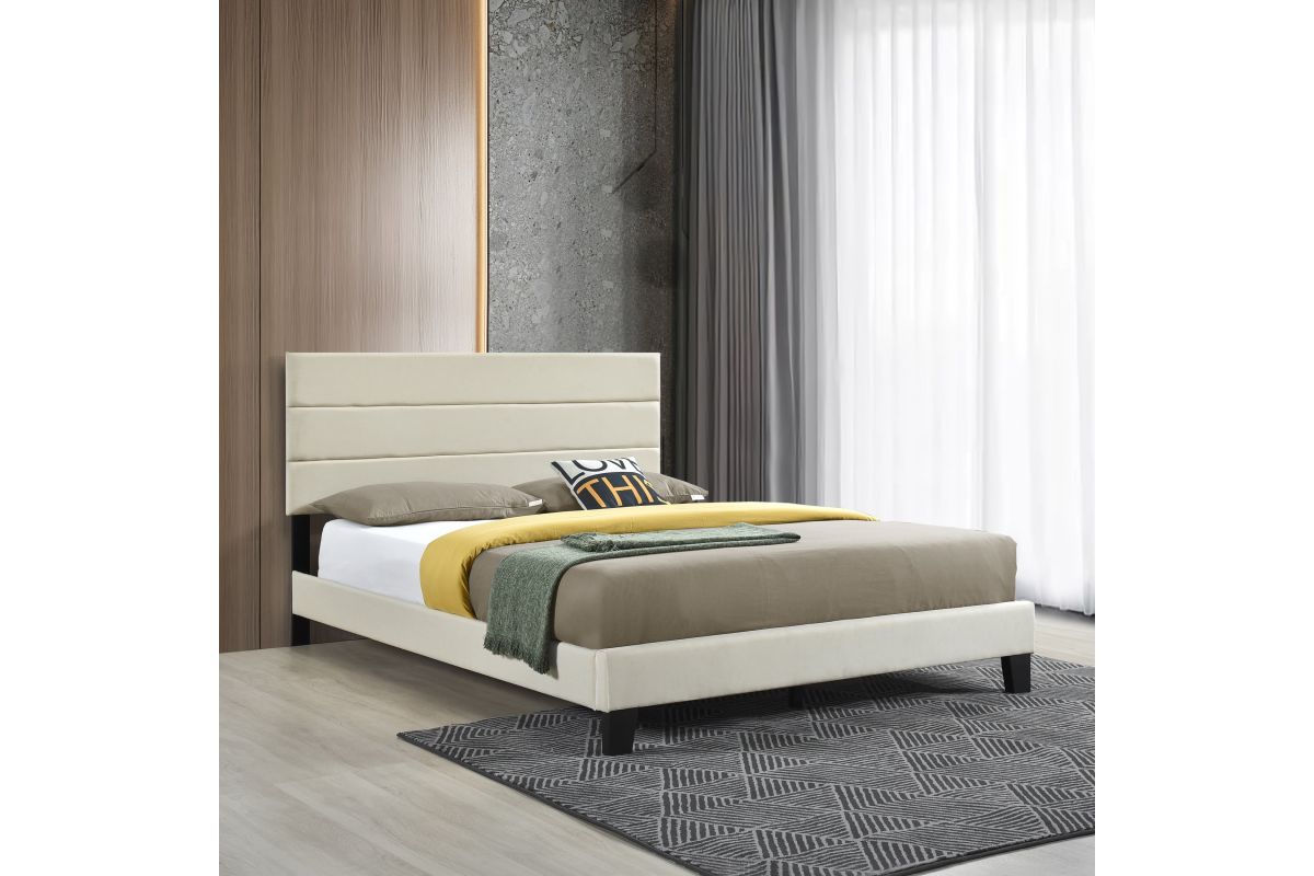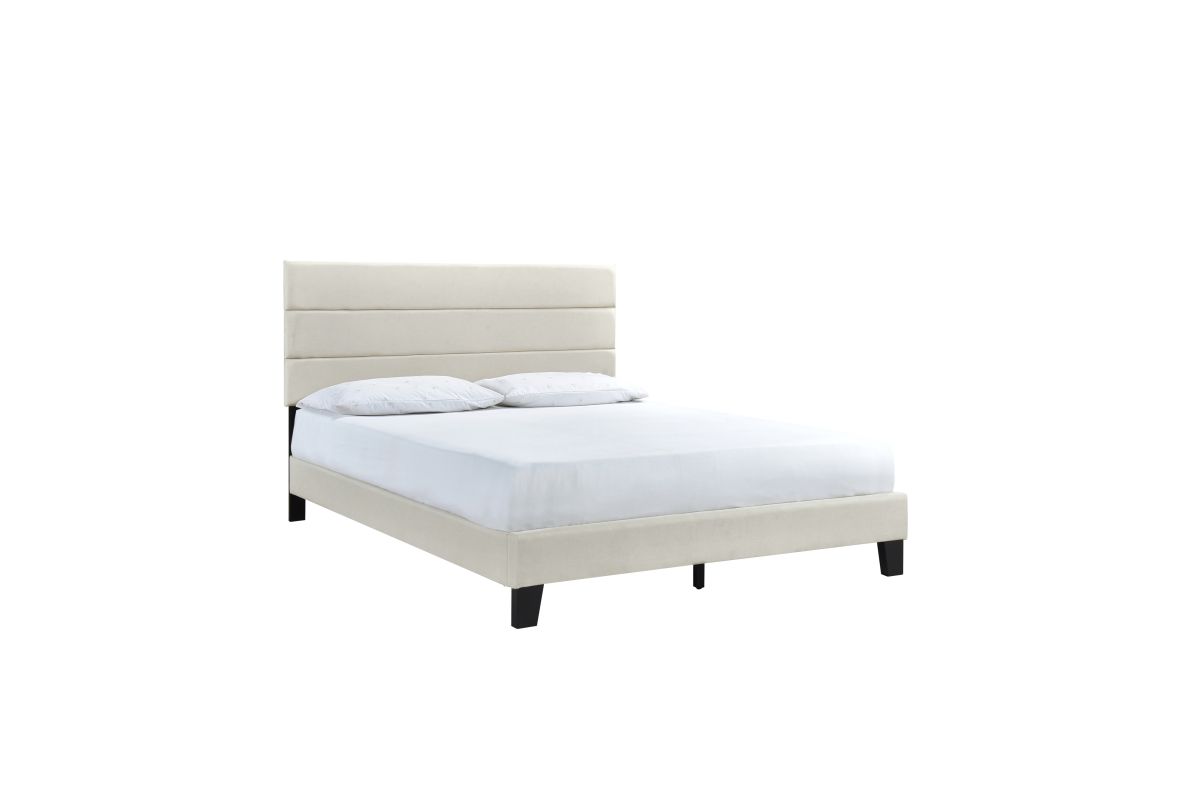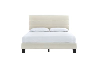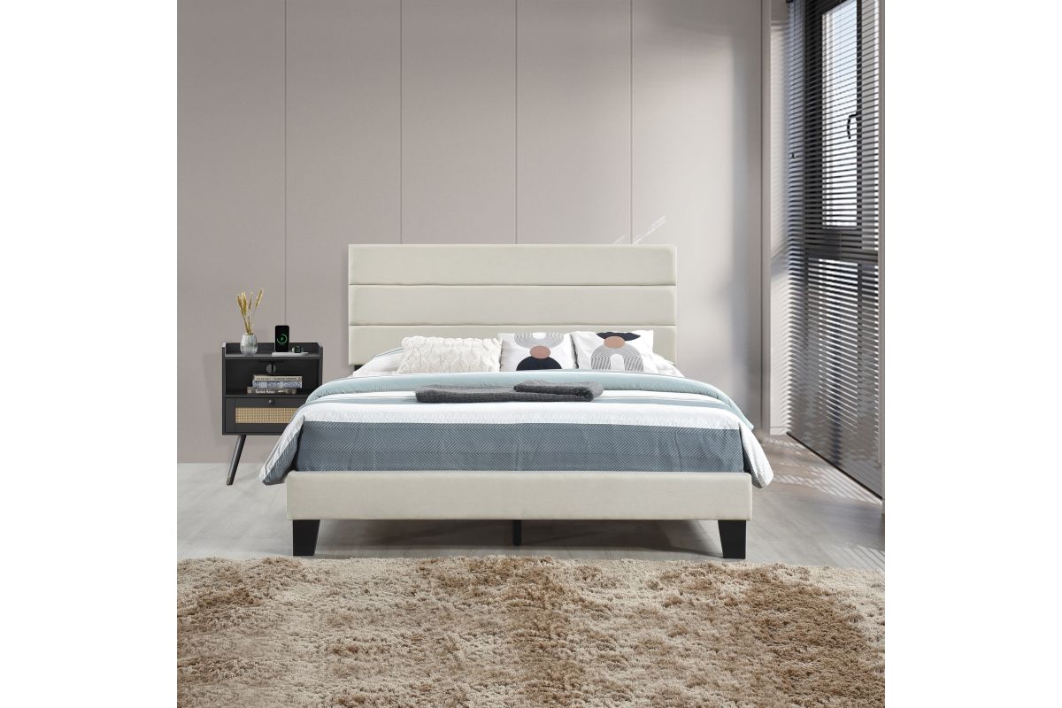 King Platform Bed W/ 13 Slats, Beige. Assembly Required.