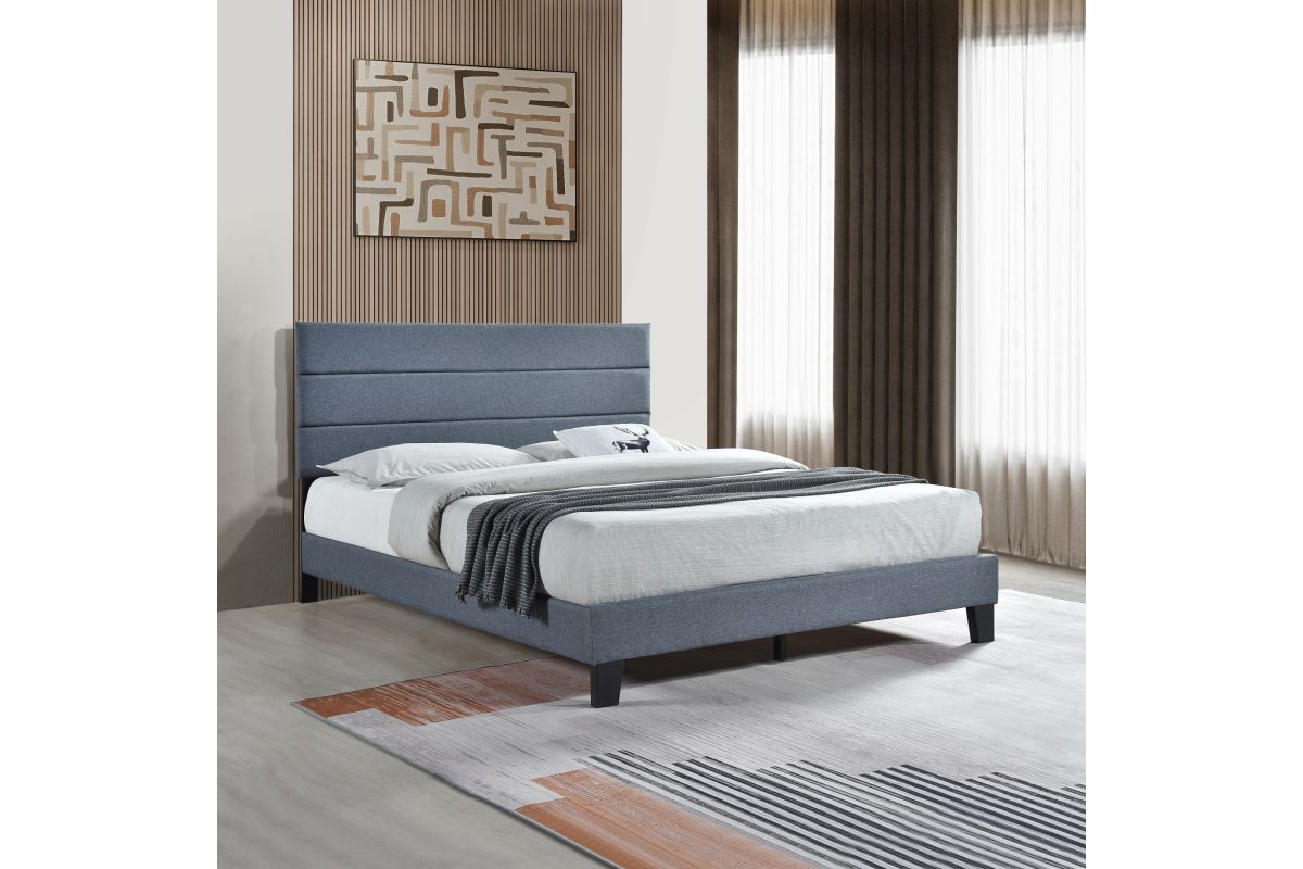 King Platform Bed W/ 13 Slats, Dark Grey. Assembly Required.