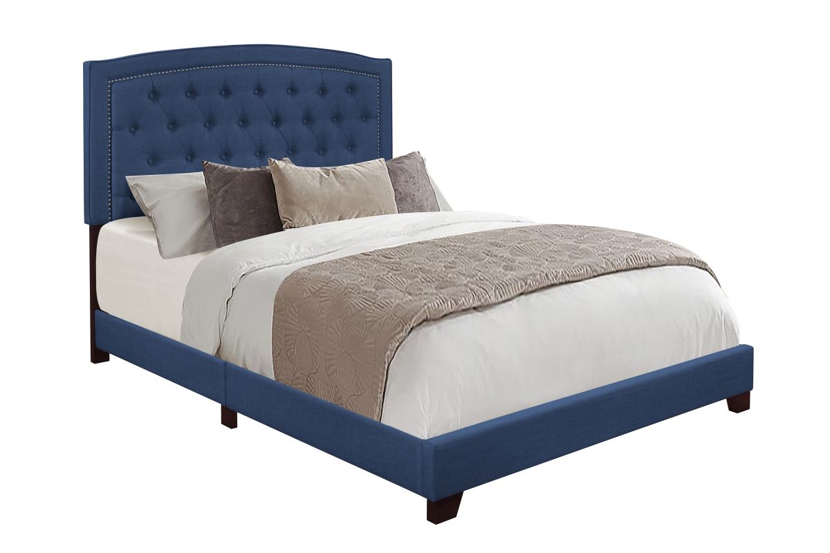 Queen Bed W/Blue Fabric