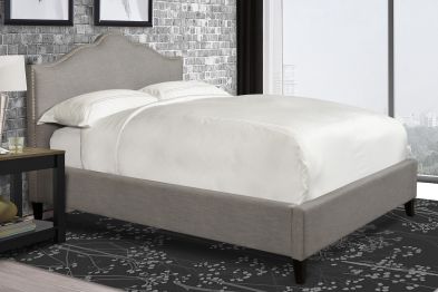 The Blaire Grey King Bed is contemporary with transitional influence. Its clean lines, soft texture, and nailhead embellishments allow it to suit a range of styles from modern to soft traditional.