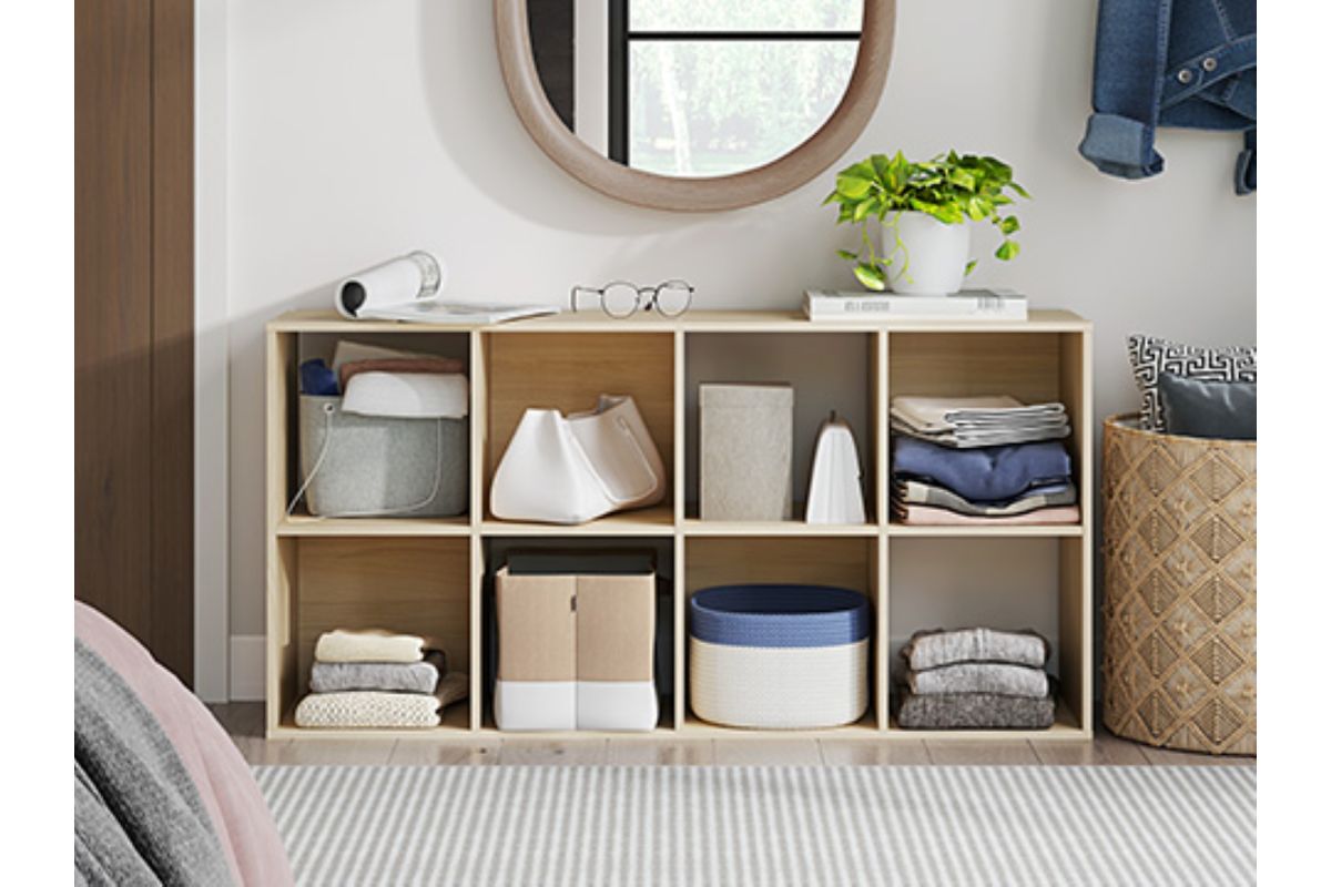 Keep clutter out from underfoot with this eight-cube organizer. The natural finish over replicated ash wood grain is warm and inviting, all while keeping your toys, knickknacks and other items stored away. The perfect marriage of style and function, this organizer is an ideal addition to any busy living space.