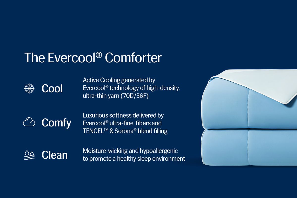 The Evercool® Cooling Comforter provides the ideal balance of breathable softness and just the right amount of weight. It’s moisture-wicking properties actively pulls moisture away, keeping your micro-environment dry and comfortable throughout the night. This combination offers ideal comfort while preventing heat and moisture buildup, making it perfect for hot sleepers who want an uninterrupted, restful night.