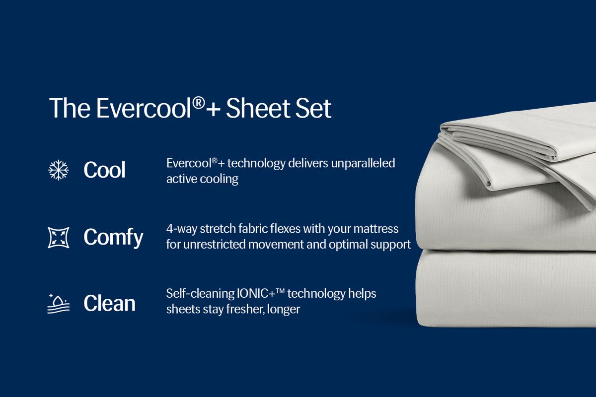 • Cool to the touch while maintaining an ideal and regulated temperature all night long. • Flexible 4-way stretch prevents hard spots, while an ideal balance of softness and smoothness ensures all-night comfort. • Ionic+® technology inhibits bacterial growth, preventing odors and stains to maintain a cleaner, fresher surface over time. • Machine washable