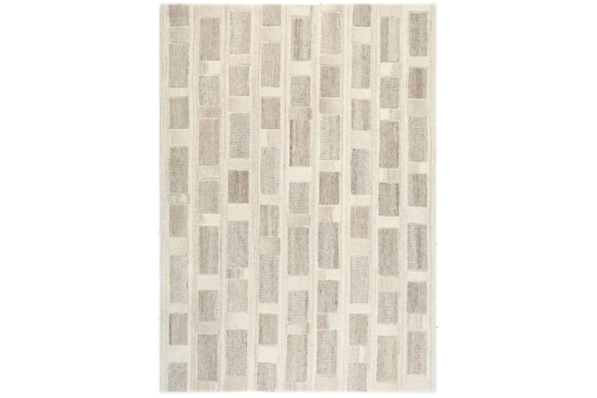 - Hand-tufted brick pattern in tan, brown, and white for a contemporary, textural statement