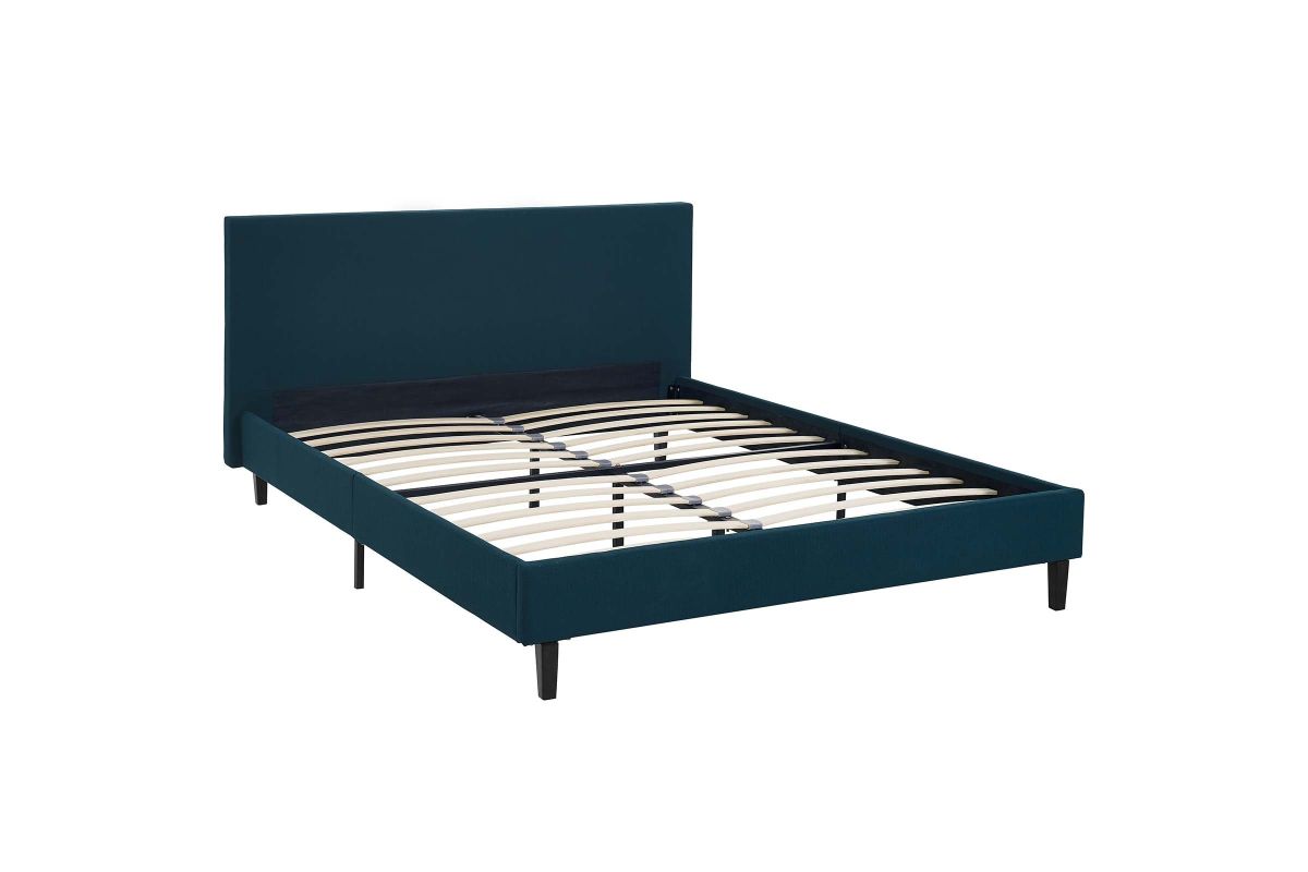 Restyle your bedroom décor with the Anya Platform Bed. Designed with a chic avant-garde look, Anya comes with an upholstered polyester fabric base and headboard, solid wood legs, and a slatted wood support system that eliminates the need for a box spring. Complete with a reinforced center beam with supporting legs for maximum stability, Anya accommodates the various mattress types on the market such as memory foam, spring, latex, and hybrid. A sleek and striking centerpiece to your bedroom, Anya is a quality modern bed poised to thoroughly transform your space. Weight capacity up to 1300 lbs. Mattress Not Included.