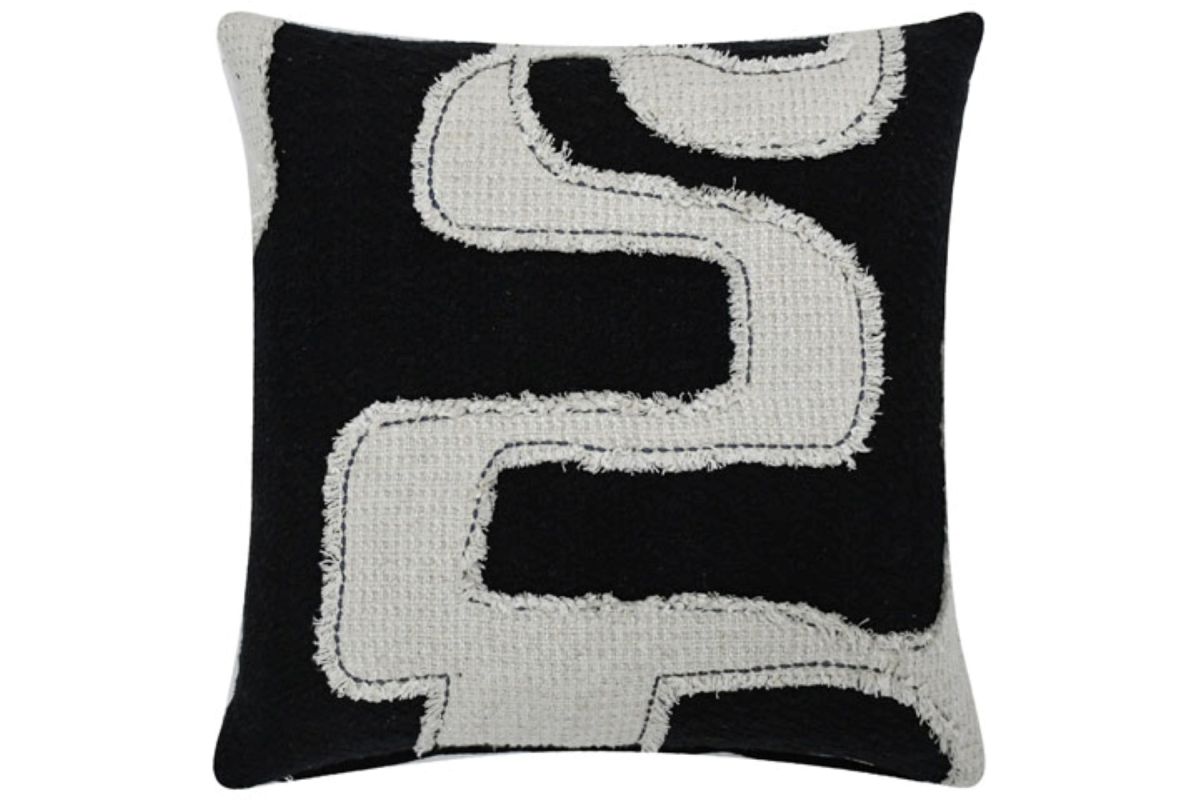 This set features an embroidered abstract design in sophisticated black and beige tones, bringing a contemporary, artistic touch to any room. The pillows are crafted with a soft cotton cover, solid black reverse, and knife edge construction for a tailored look. A zipper closure and fiber fill ensure both convenience and comfort. The machine washable design adds practicality, making these pillows as easy to care for as they are beautiful.