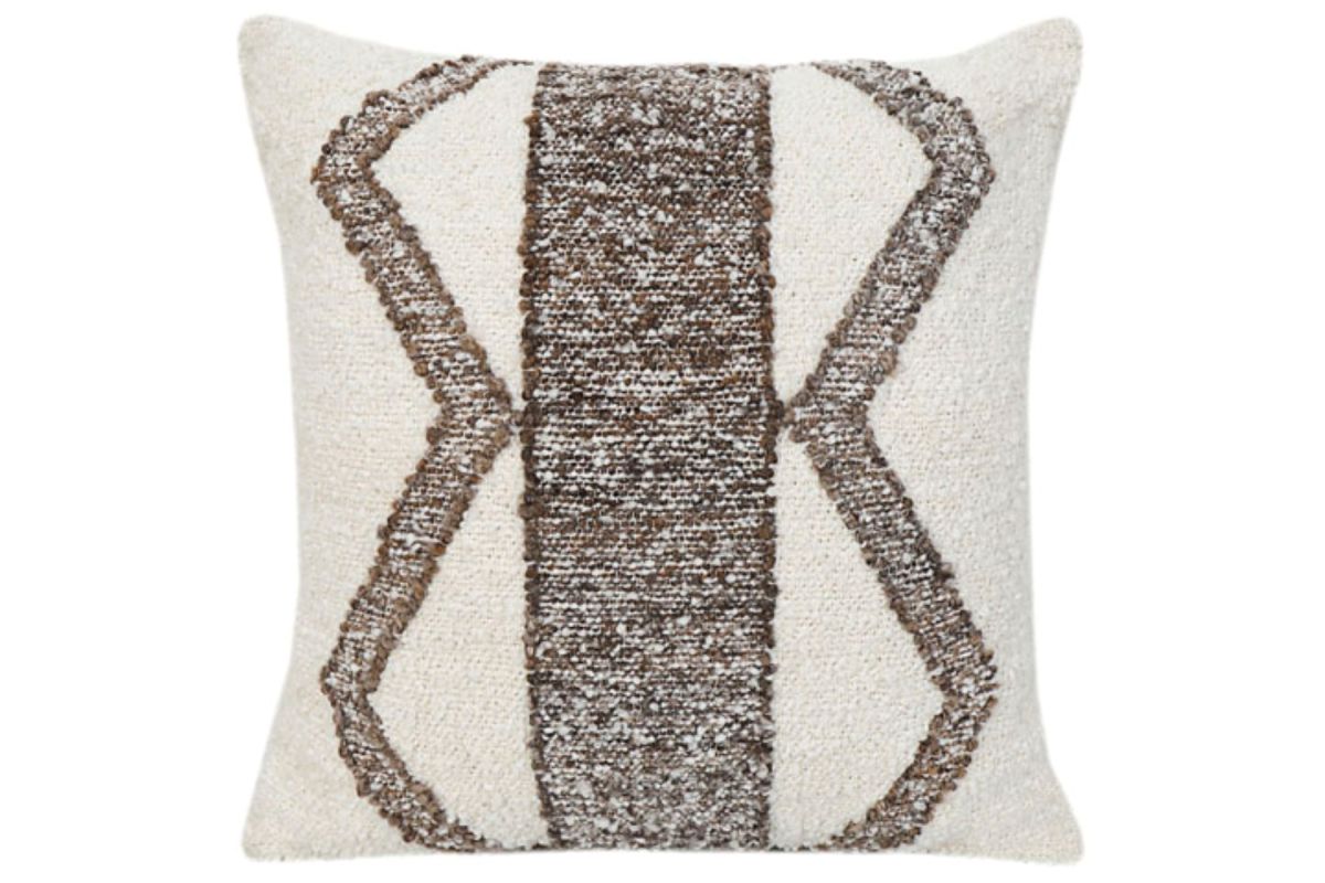 This set features a hand-woven geometric design in ivory and shades of brown, creating a modern yet earthy look that complements a variety of decor styles. The pillows have a solid white reverse for versatile styling, a durable polyester cover, and a convenient zipper closure. Fiber filled for comfort and spot clean only for easy maintenance, these pillows are ideal for adding both texture and coziness to sofas, beds, or accent chairs.