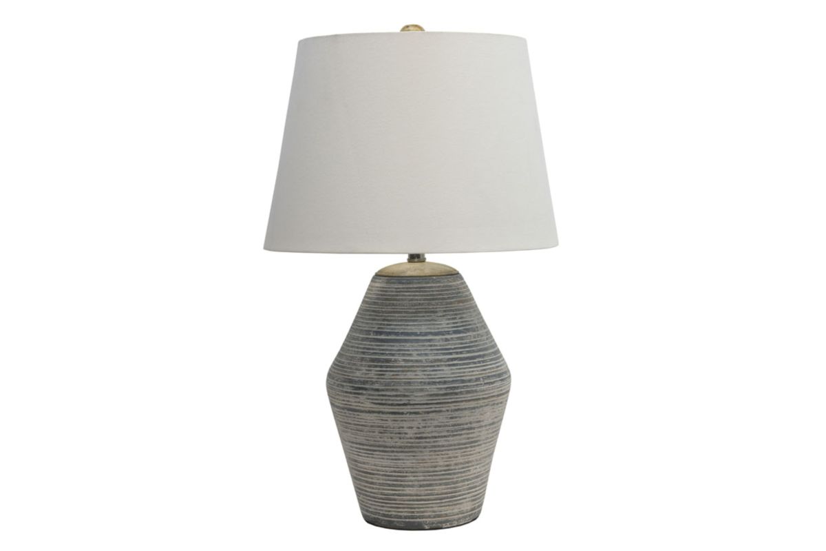Bathe your room in the gentle glow of the Lawrock Table Lamp, where distressed white and blue terracotta meet natural wood for a look that feels both timeless and tender. Its softly curved shade casts a warm, inviting light—perfect for illuminating cozy evenings and creating an ambiance where every moment feels touched by romance.