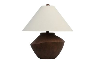 This lamp features an antique red-brown finished poly resin base, which gives it a warm, vintage look that stands out from more contemporary or minimalist designs. The empire hardback shade complements the base with a classic silhouette, providing a soft, inviting glow ideal for creating a cozy and welcoming atmosphere. The on/off inline switch offers straightforward functionality, and the lamp is designed for a standard E26 socket with a recommended 100-watt max bulb, making it practical for everyday use. Its unique combination of rich color, traditional shape, and durable poly resin construction makes it a standout option for those seeking both style and substance in their lighting.