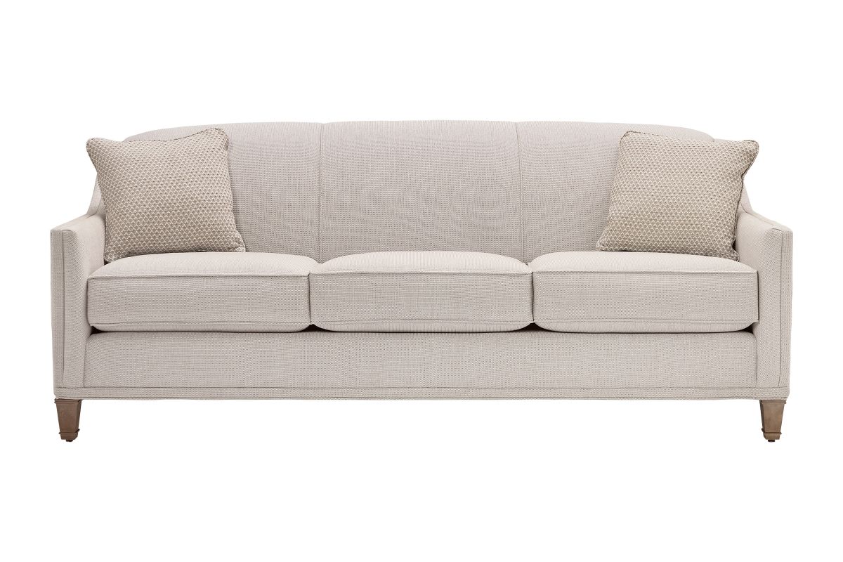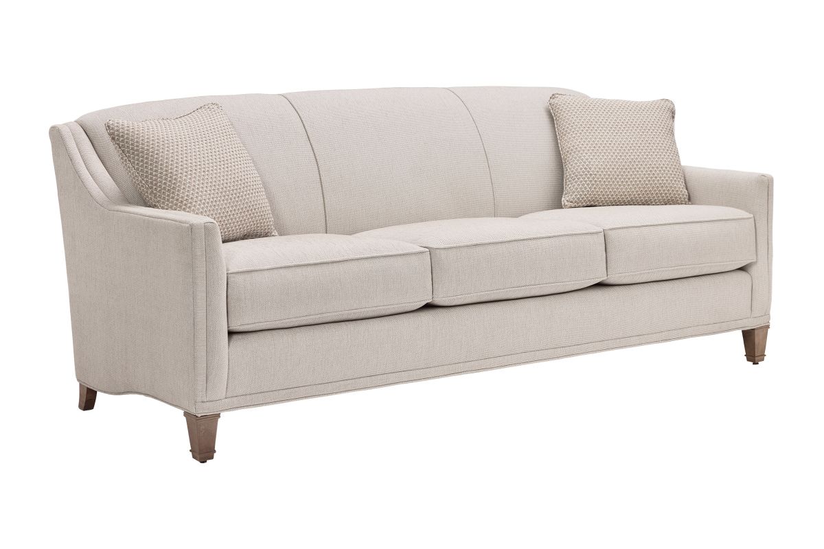The Gibson Collection features a timeless tight-back sofa with three plush cushions, no assembly required, and elegant wood legs in a warm latte finish—offering classic details with a clean, transitional style that fits effortlessly into any living space.