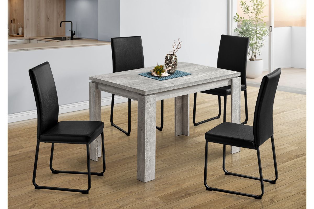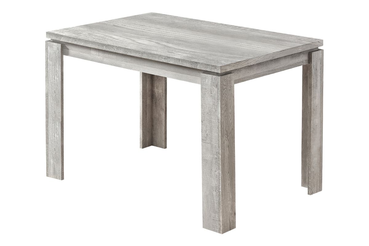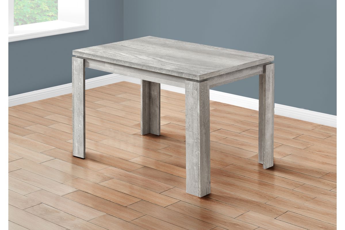 Looking for rustic? Looking for contemporary? How about both? This grey thick-paneled kitchen table features a unique reclaimed wood surface to offer you the perfect farmhouse style for your new place. The modern dining table also features open block shaped legs to keep everything nice and sturdy. When it's time to make a statement in your home, count on this kitchen table to do the job in a casual or formal dining setting. Chairs sold separately.