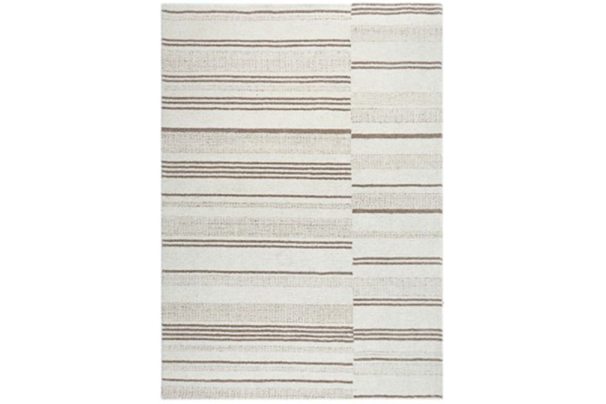 - Hand tufted, stripe design in ivory and tan