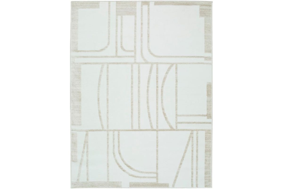 - Machine woven high-low, geometric design in ivory and beige