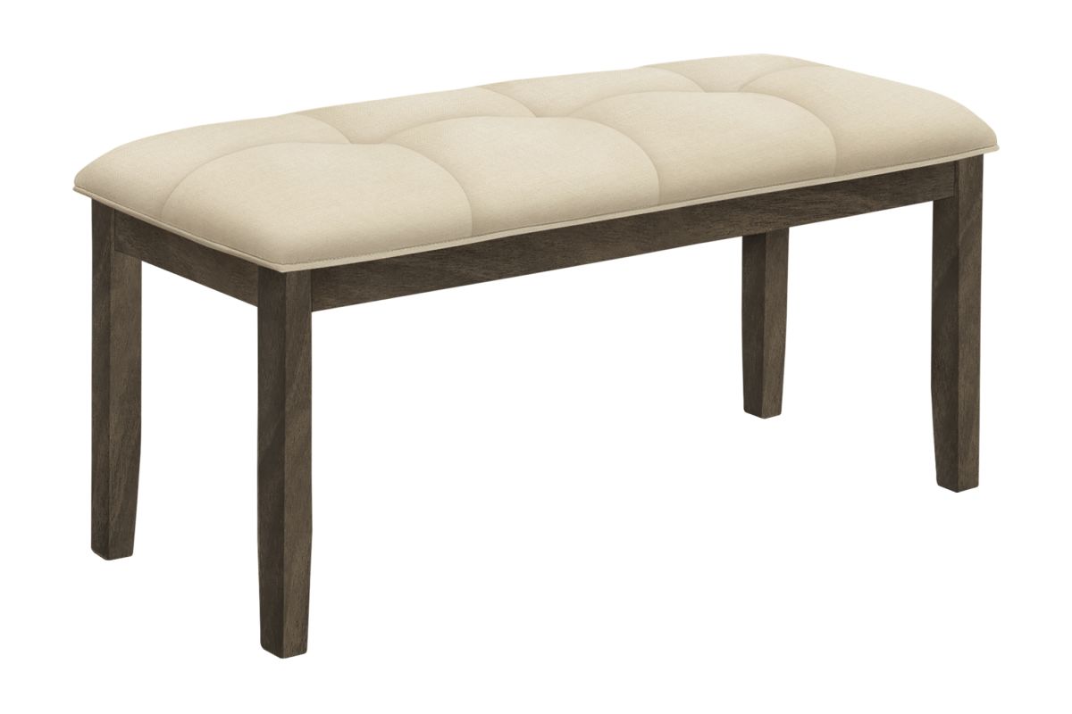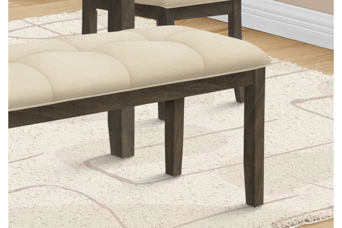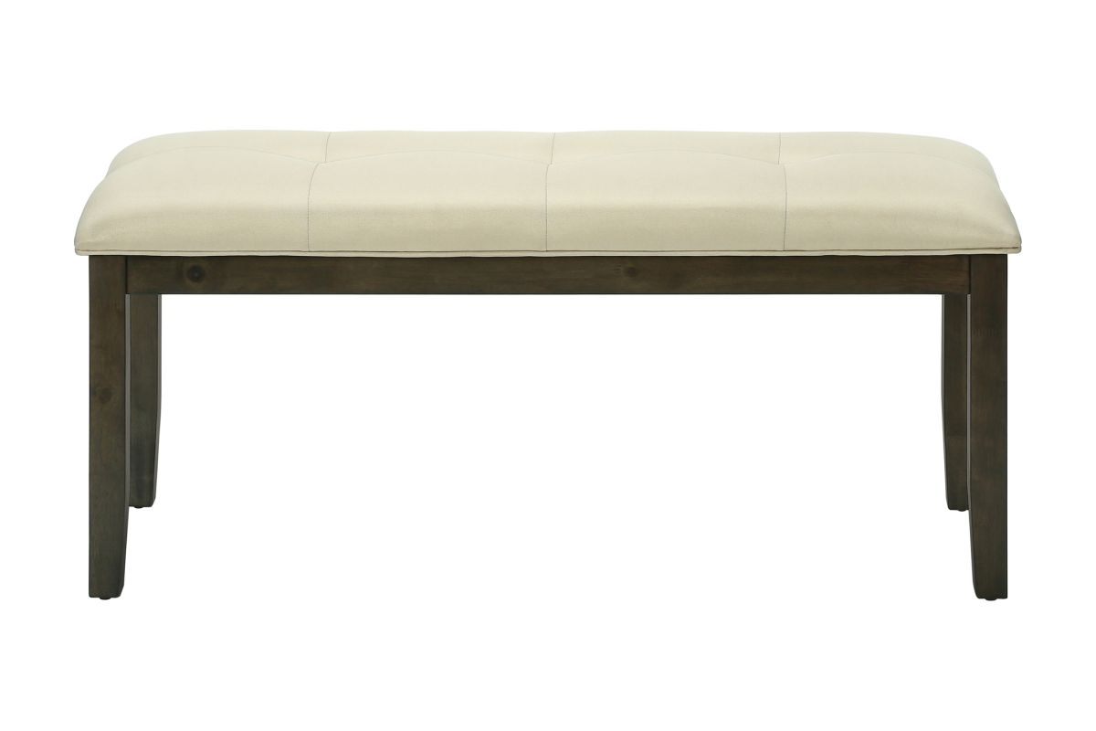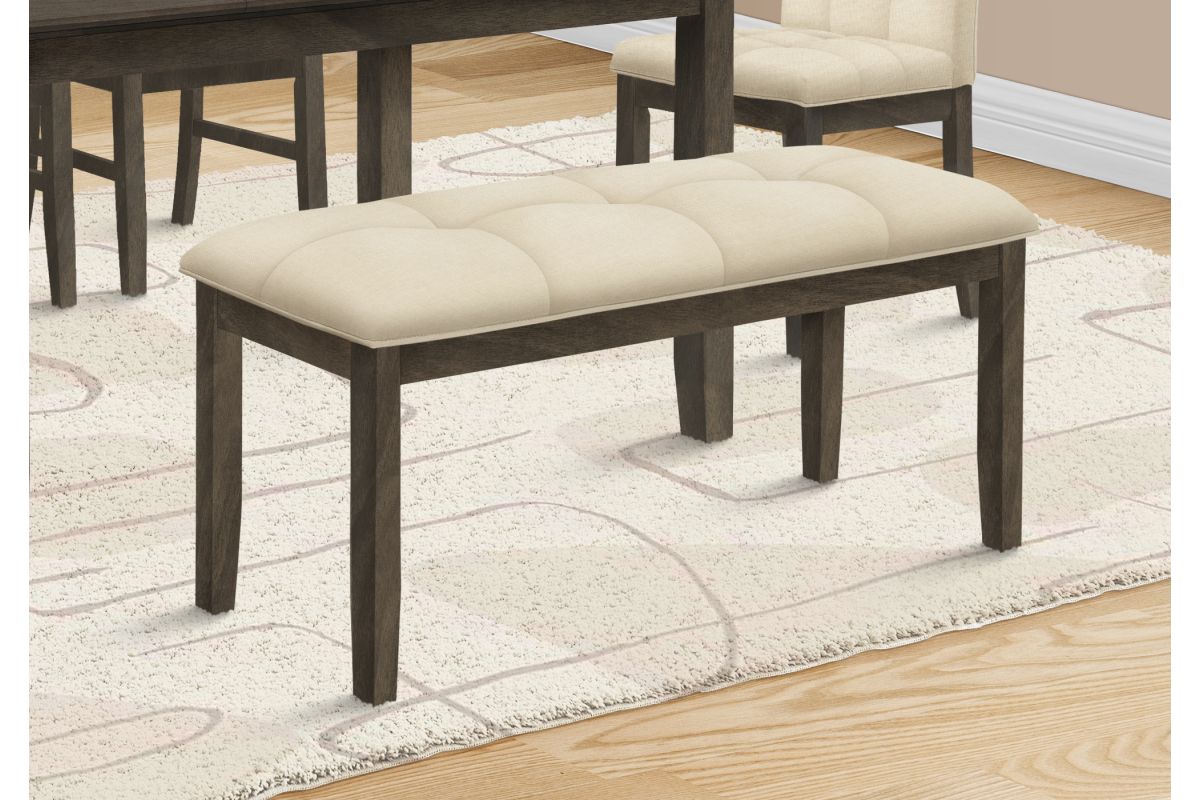 Add practical style to any room in your home with this 44 inch long rectangular bench that features luxurious tufted cushioning. Designed in a timeless transitional style, this elegant bench is built with a sturdy, solid wood grey frame, and an upholstered tufted seat in a neutral cream fabric, bringing fashionable comfort to your dining room, kitchen, living room, entryway or hallway. Easy to assemble, with complete illustrated instructions included, this padded seat bench will be setup to enjoy in no time at all. Durably designed for years of use, this versatile bench includes a 2 year limited warranty against manufacturer's defects for your satisfaction.