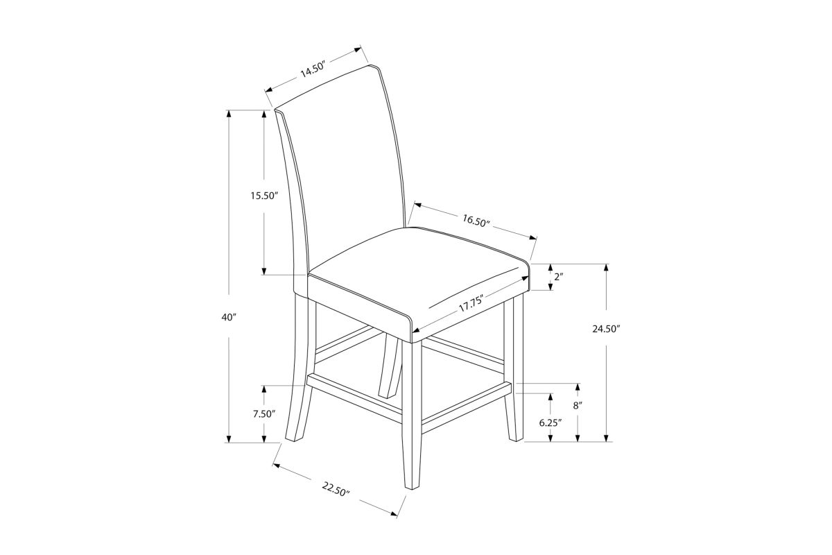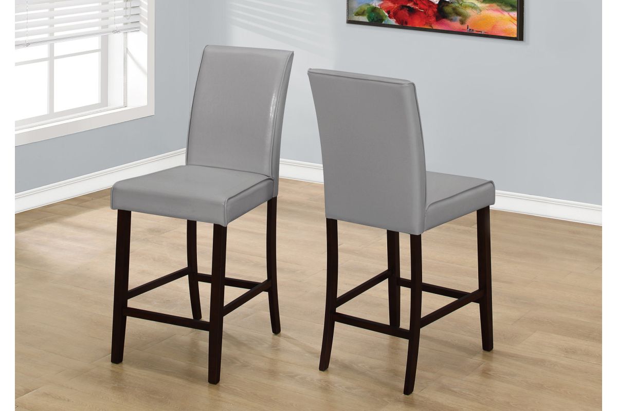 Take casual dining to a whole new level with this set of 2 counter height leather-look chairs. Built for comfort with a padded seat and back and a well positioned footrest for stability, these chairs offer contemporary appeal that will provide years of lasting enjoyment. Upholstered in a grey easy care material, these counter height chairs are ideal for your kitchen, dining room, breakfast bar or loft.