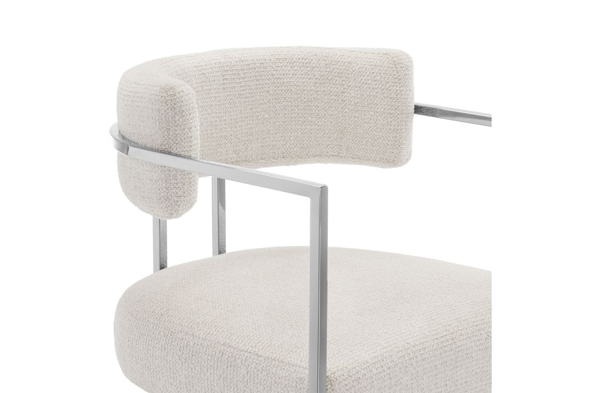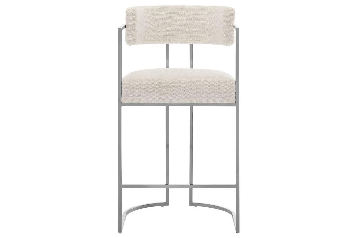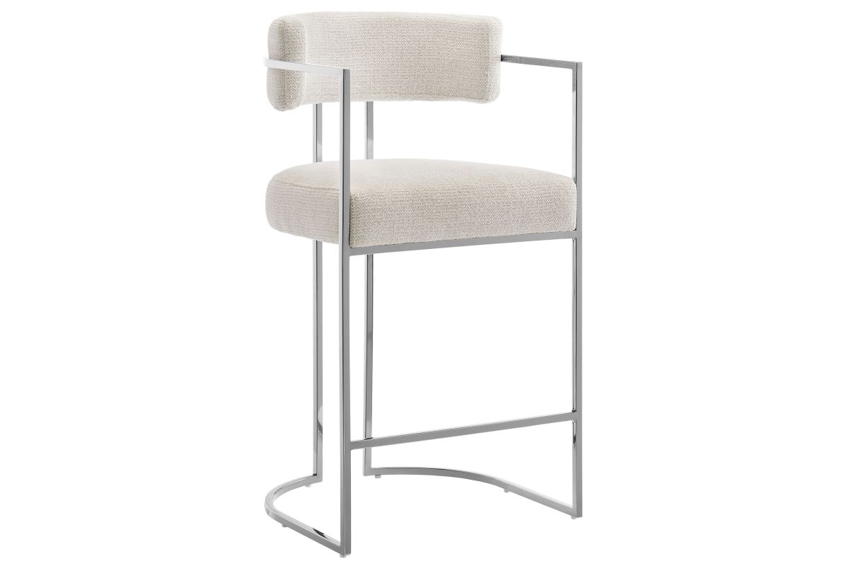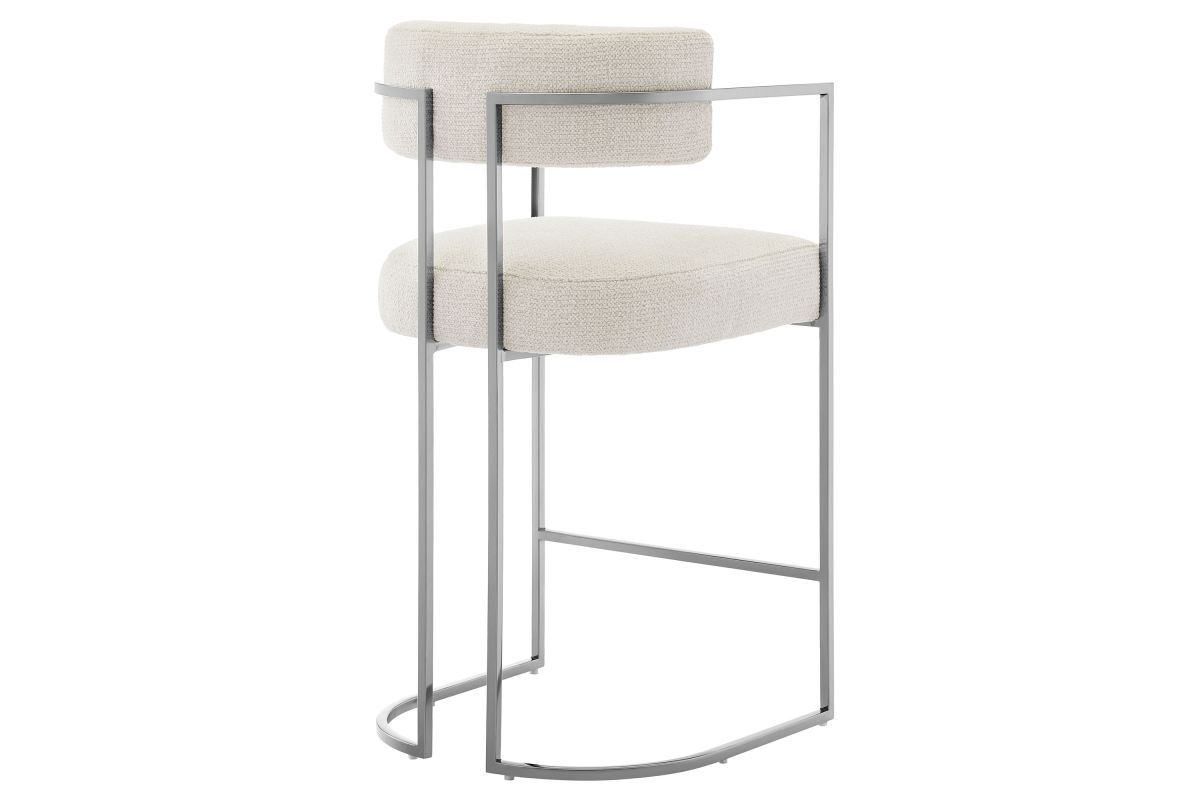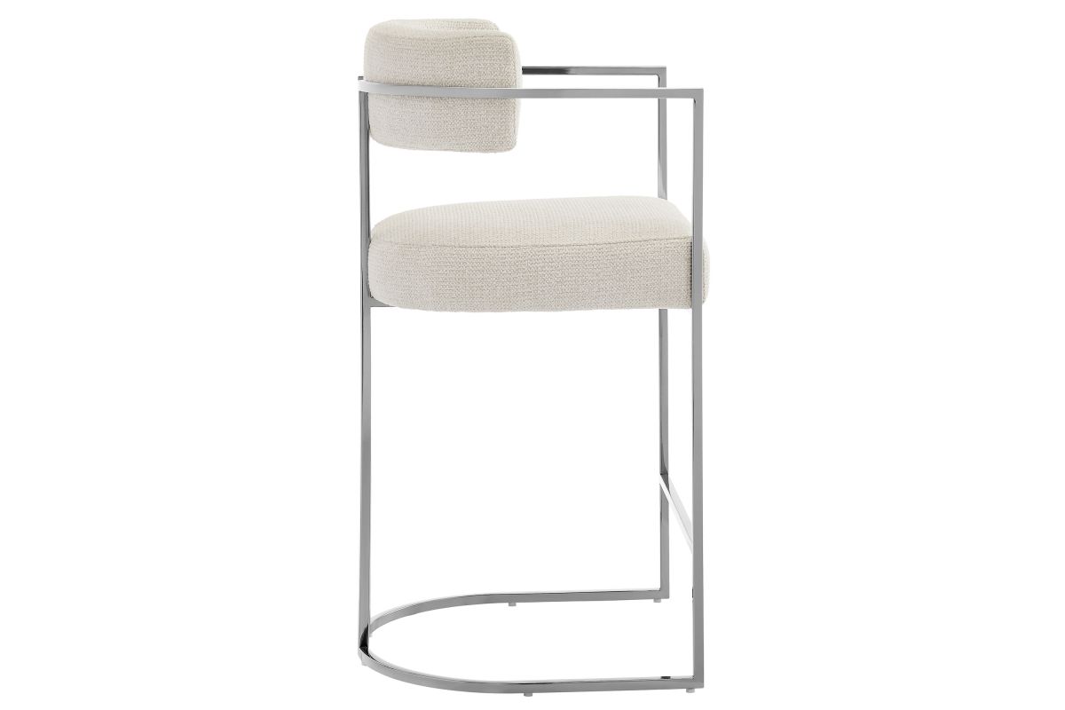 Elevate your kitchen or dining area with the Huron Counter-Height Stool, a masterpiece of modern design. The inspired barrel stool features a graceful metal frame with integrated arms and a unique sled base that creates a bold, architectural silhouette, blending retro style and stability. Upholstered in a luxe woven fabric with textured depth, the seat and backrest on this padded counter stool offer exceptional comfort while adding a tactile sophistication to your space. The rounded back and supportive arms provide a perfect balance of elegance and function. Better for you and the environment, the upholstery fabric is also OEKO-TEX® STANDARD 100 Certified. Designed to complement kitchen islands, counter-height tables, and contemporary interiors, the Huron Curved Back Stool is both versatile and statement-making 70's flair. Equipped with adjustable non-marking floor glides for stability and floor protection, this counter stool arrives fully assembled for immediate use. Weight Capacity: 300 lbs.