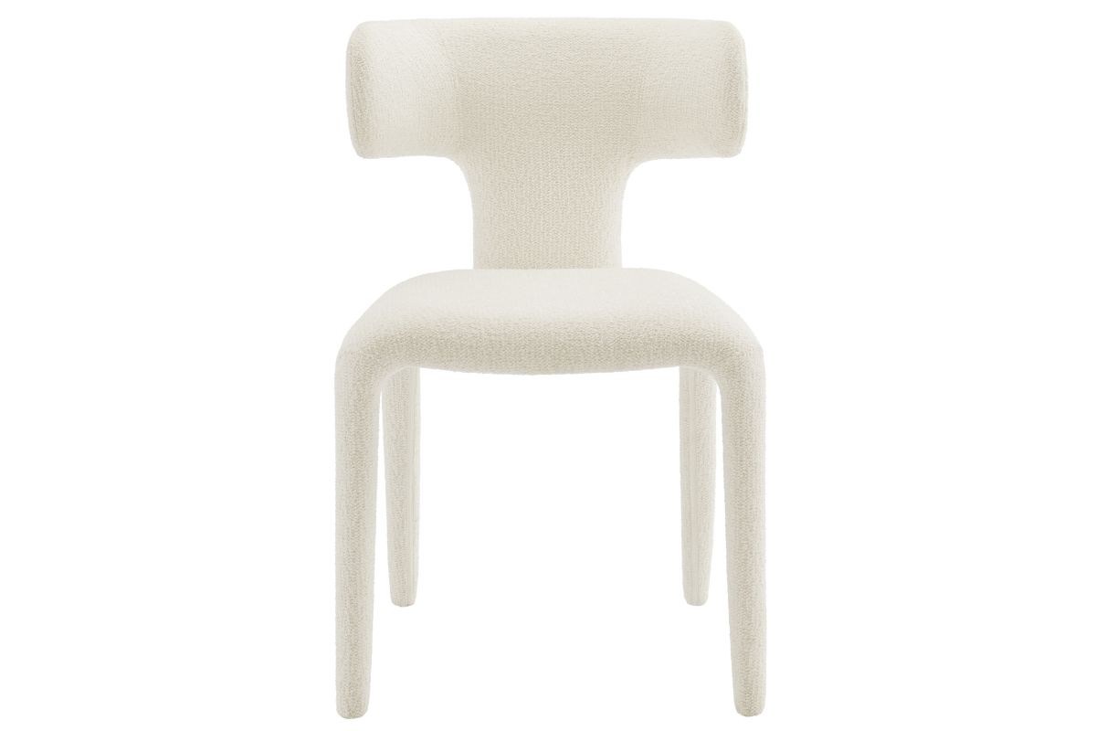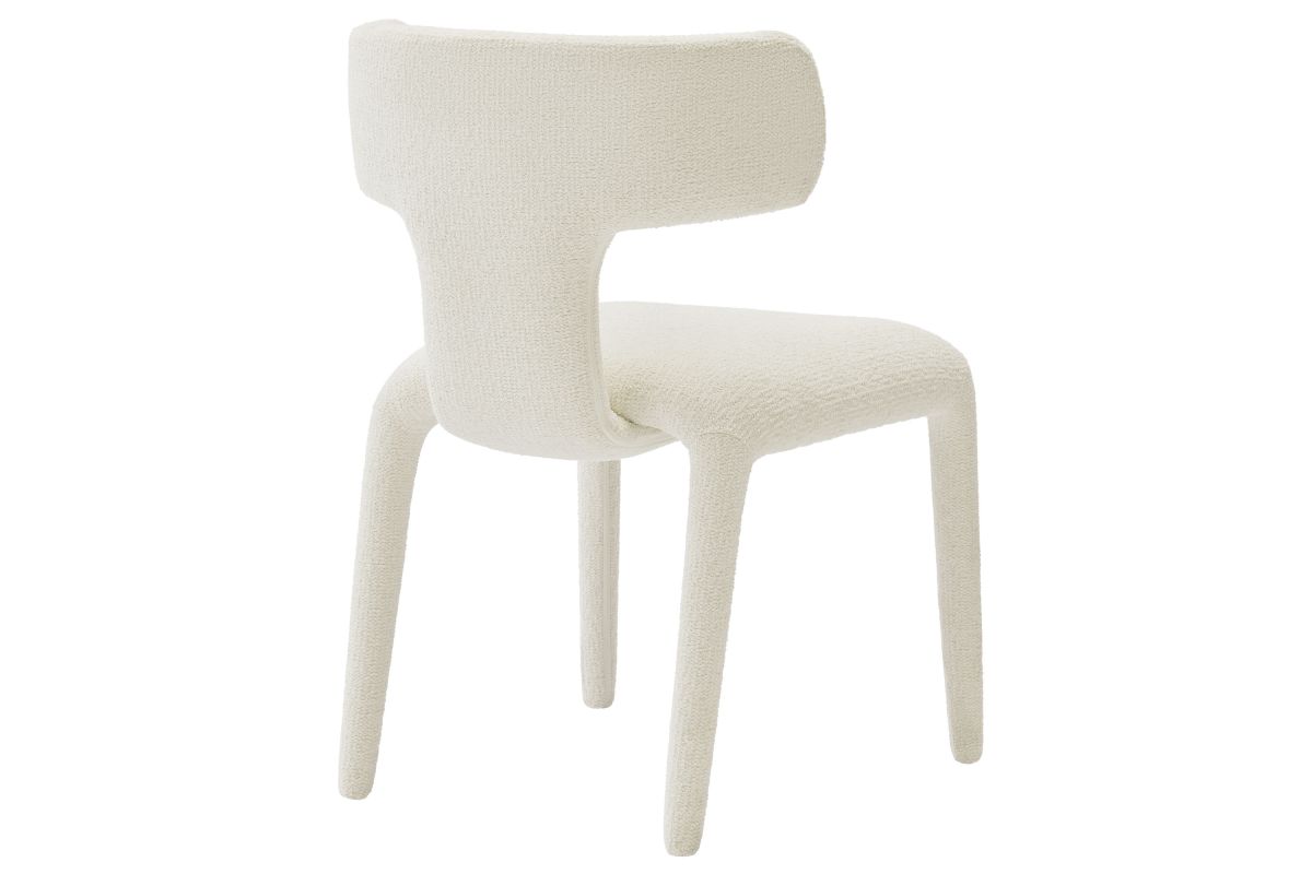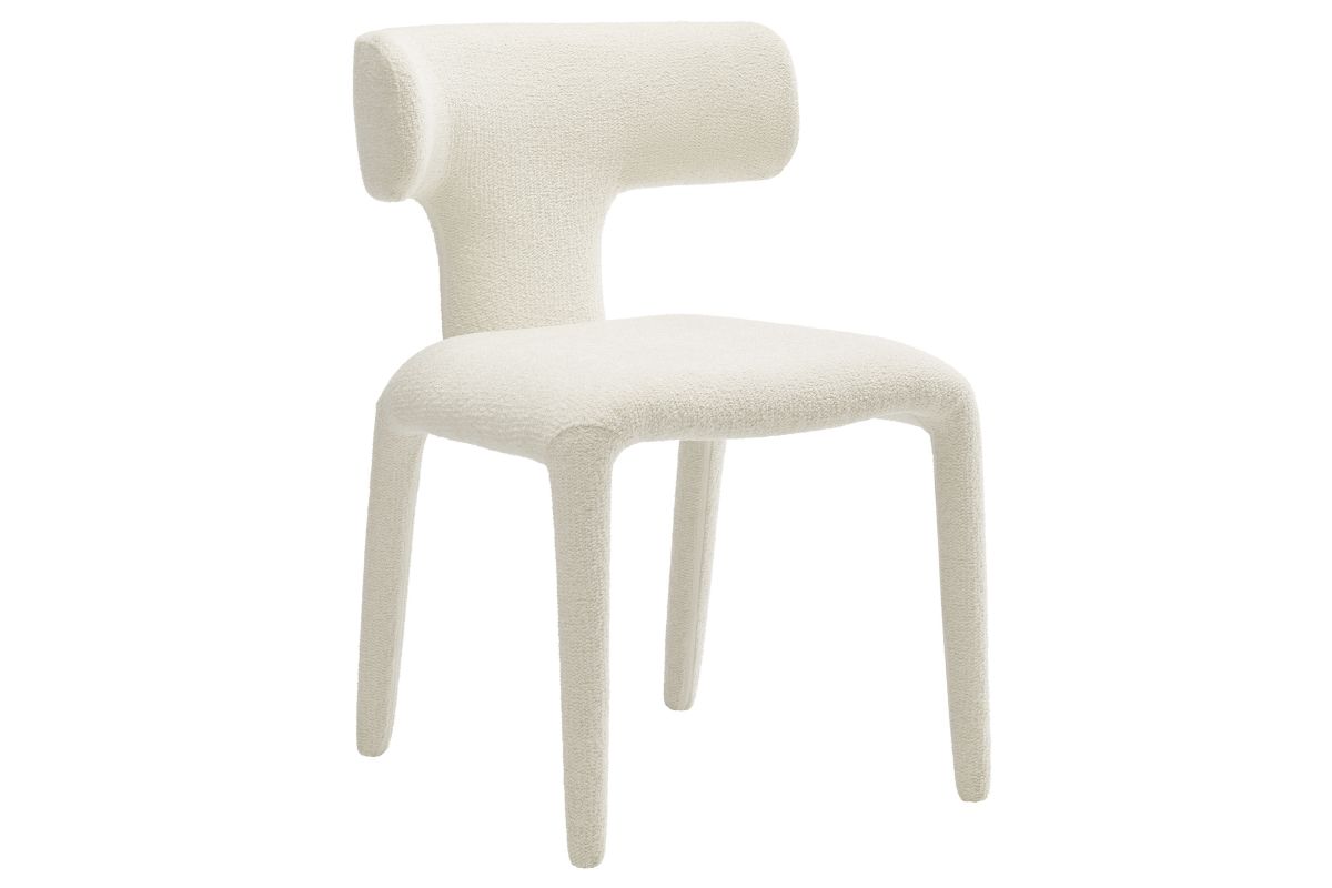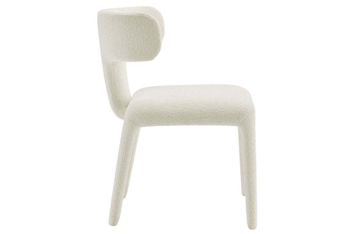 Introduce a sophisticated yet inviting charm to your dining or living area with the set of 2 Stellan Boucle Dining Chair. Fully covered in luxurious boucle fabric, this upholstered chair exudes cozy elegance with its textured depth and tactile appeal. Made from recycled plastic bottles, the upholstery fabric is also OEKO-TEX® STANDARD 100 certified. The curved back dining chair's sculptural silhouette is defined with rounded edges and splayed back legs, creating a modern yet timeless profile. Built on a sturdy metal frame hidden beneath the plush padding, this boucle side chair balances form and function beautifully. Non-marking floor glides protect your floors. Perfect as an armless dining chair, accent chair, or even a stylish guest or desk chair, Stellan is a versatile addition to any contemporary or modern space. Weight Capacity: 300 lbs.