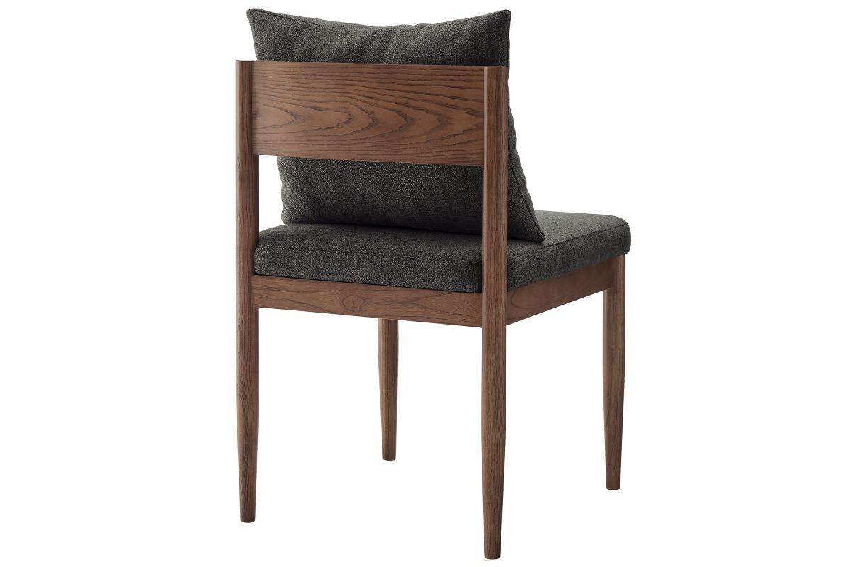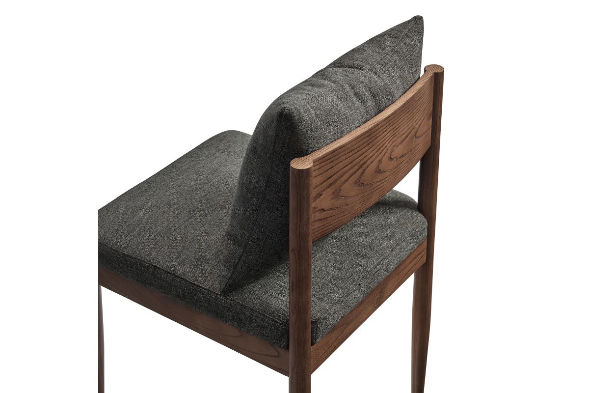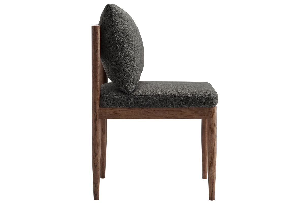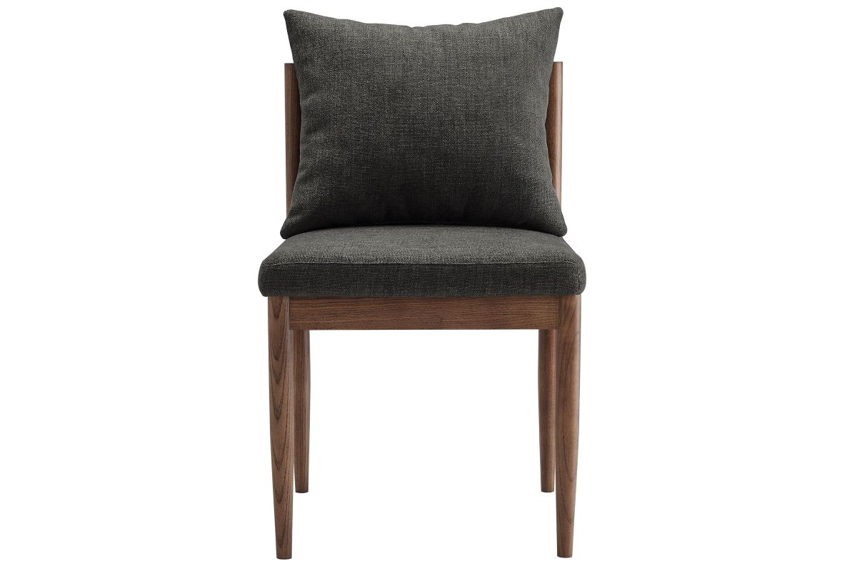 Blending modern elegance with timeless craftsmanship, the Remington Wood Dining Chair offers a refined seating experience. This armless dining chair features a solid elm wood frame with a rich finish, showcasing clean lines and an open back design The foam-padded seat and removable back pillow are wrapped in a slub weave fabric, adding texture and comfort to dining, kitchen, or living spaces. Tapered legs bring a Scandinavian touch, while non-marking foot glides protect floors. Whether as a dining room chair, upholstered side chair, or accent chair, Remington's sophisticated design complements any contemporary setting. Arrives fully assembled. Weight Capacity: 300 lbs.