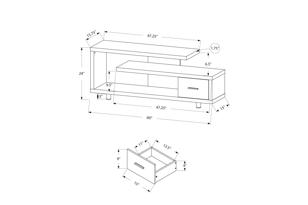 - Conveniently-located storage drawer on the right of the entertainment center to keep certain books, cables or accessories at bay
