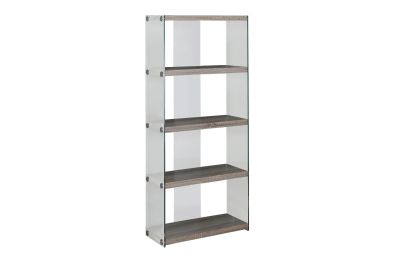 Spoil yourself with a chic tempered glass etagere that provides a perfect spot for candles, books, photo grams and other decor items. With 4 multi-functional, thick paneled display shelves in a dark taupe wood-look finish, you'll be sure to add interest wherever you choose to place this accent display case. The 5-tier etagere is equipped with polished chrome accents for more elegance. Make this bookcase the new feature in your living space.
