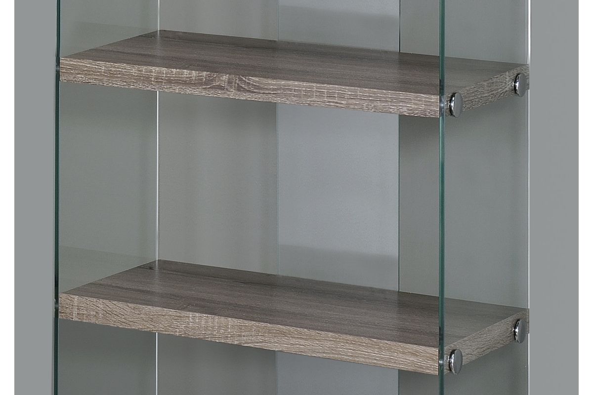 - Finished on all sides in dark taupe wood-look, this accent display case is a great way to show off your books, favorite decor items or electronics
