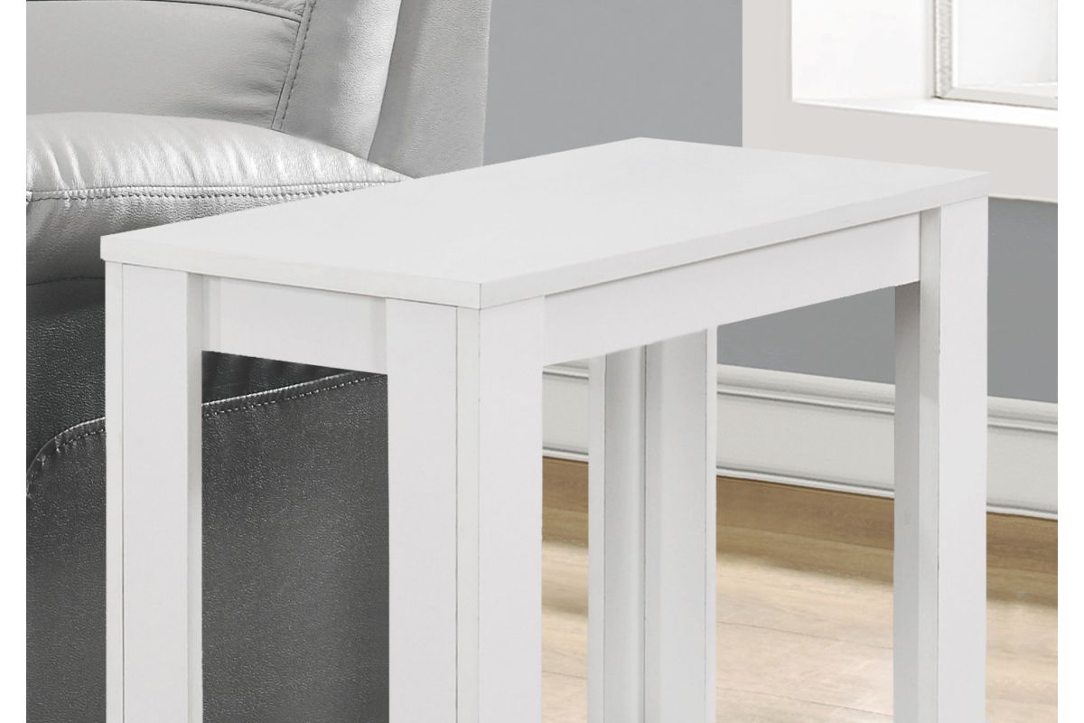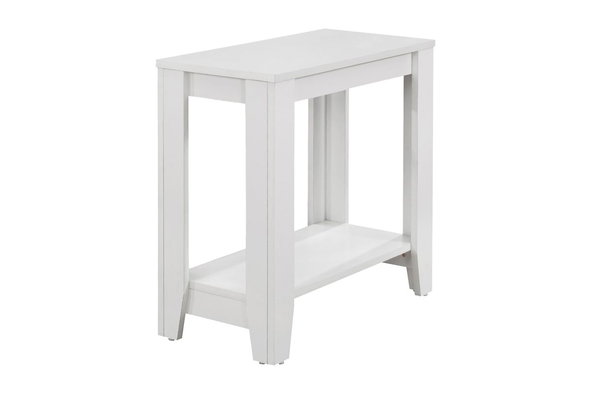 - This rectangular accent table presents an elegant white color