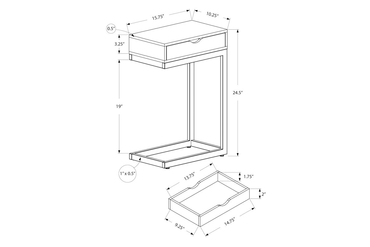 - Includes storage drawer for remotes, coasters or other accessories