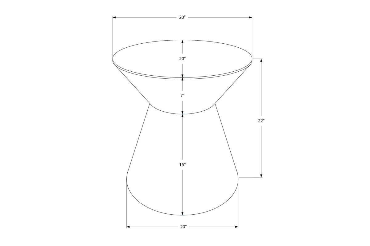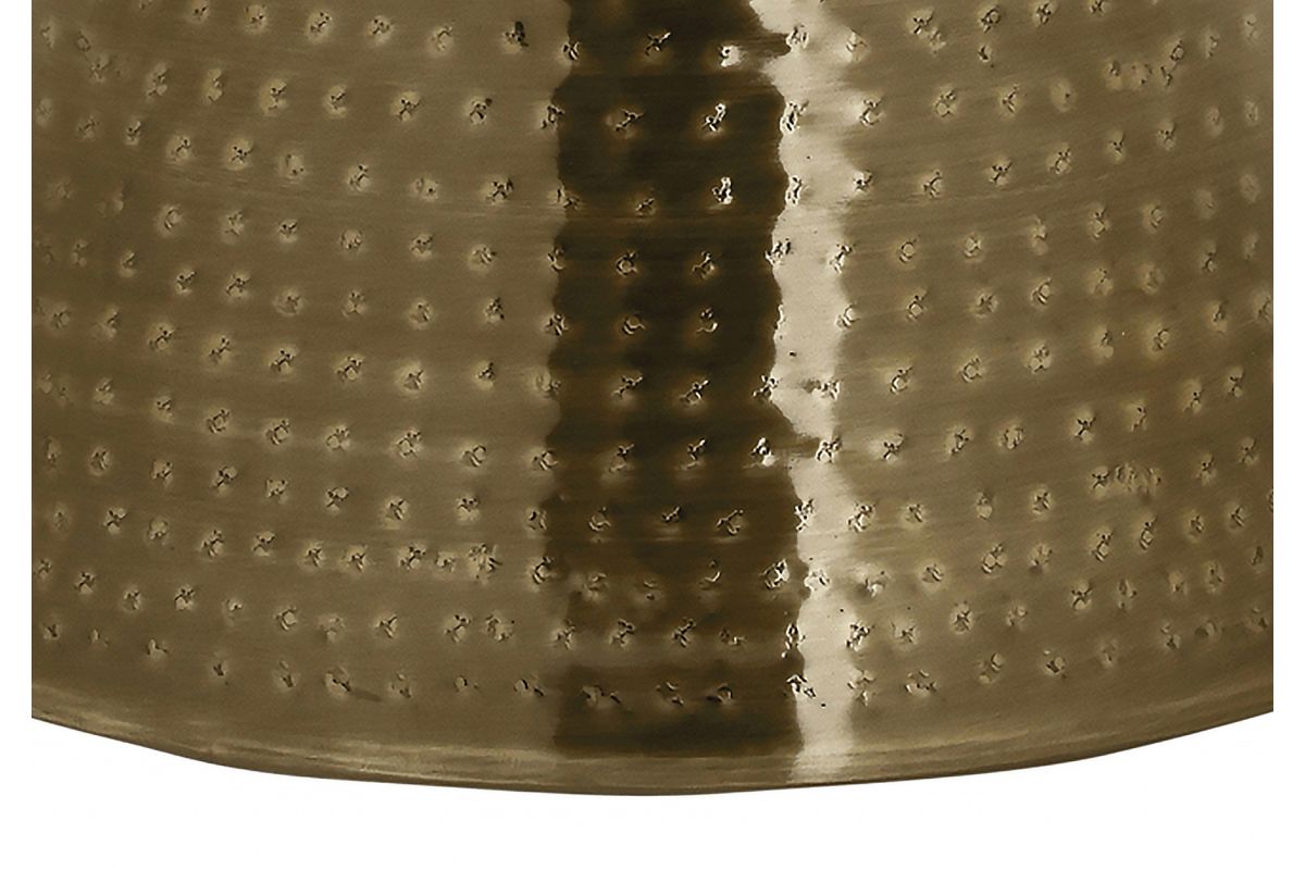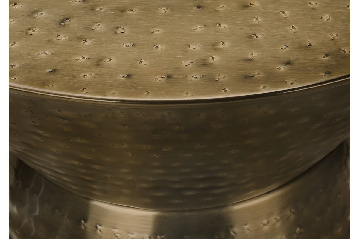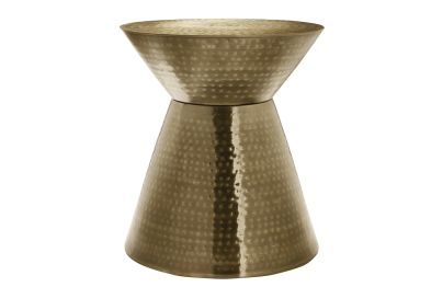 - This hand-crafted, 22" high accent table with a hammered design on all sides, brings a bold and glamourous presence to a room with its sophisticated gold metal finish in a modern hour glass shape.