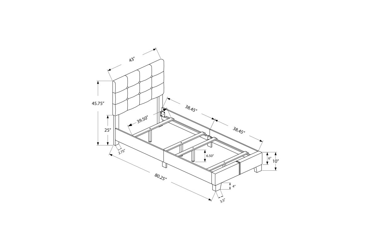 - Low-profile bed frame in a transitional style with a classic button-tufted headboard with thick, comfortable padding; frame only, twin size box spring and mattress not included.