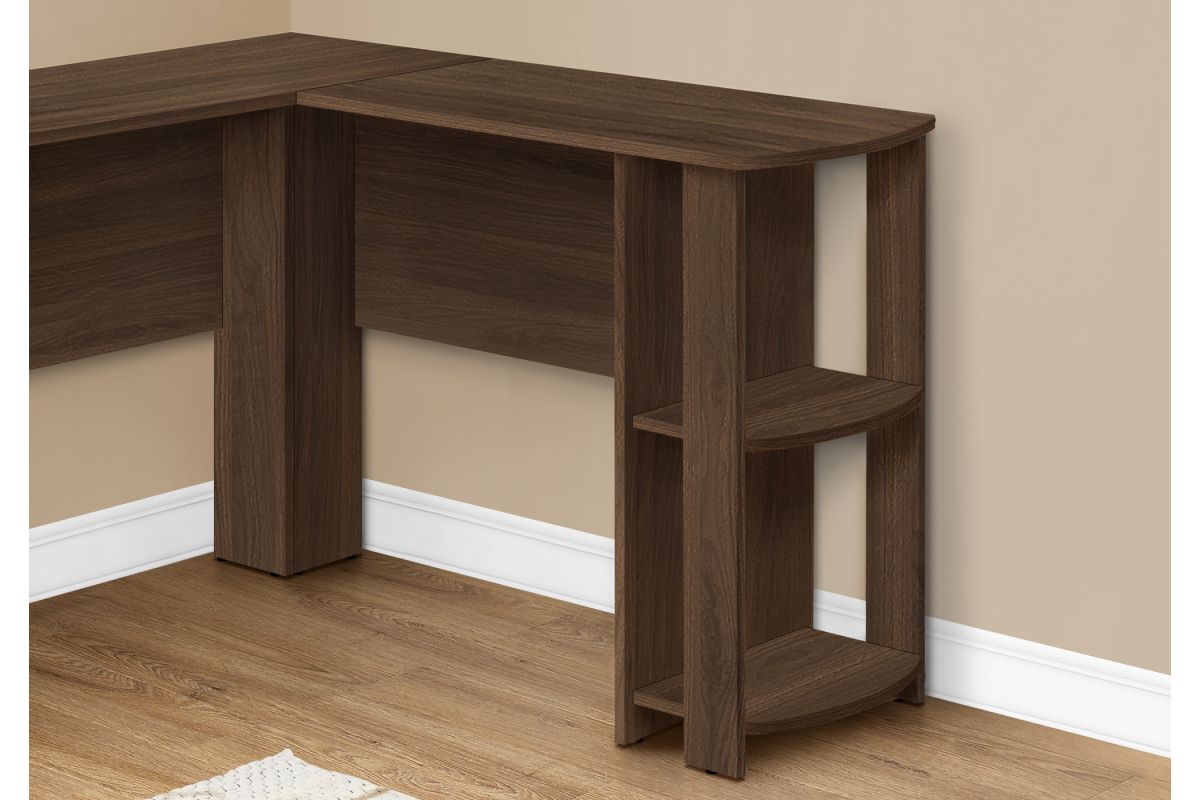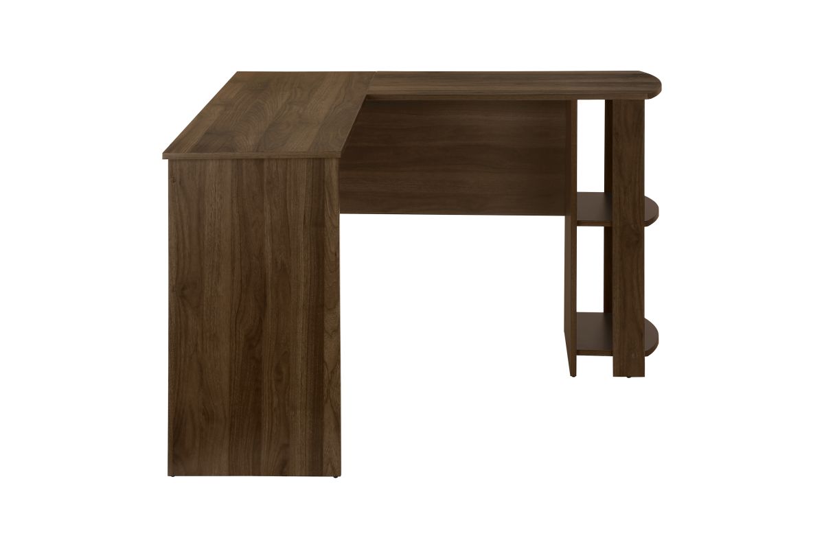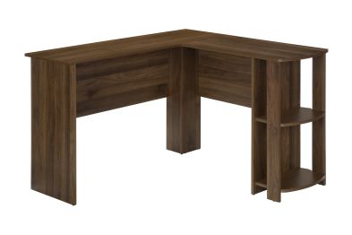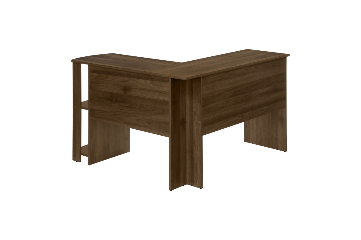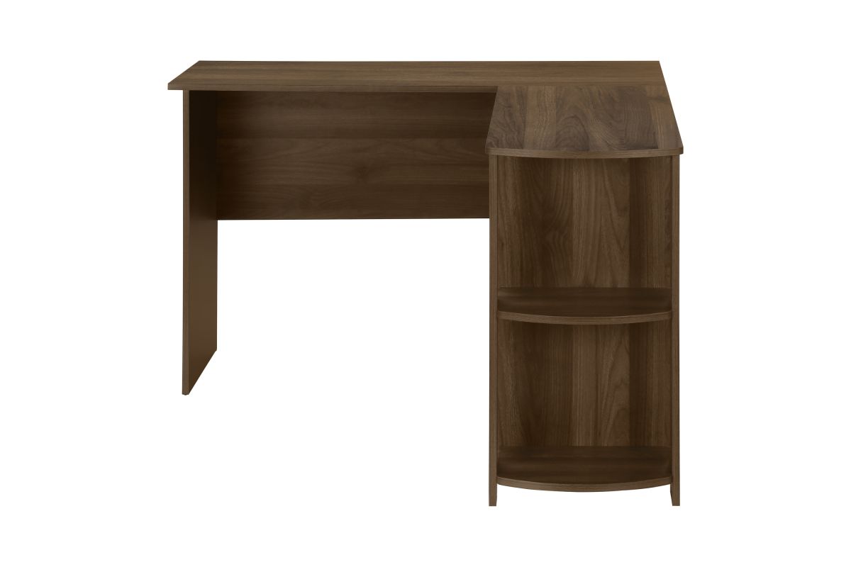 With a generous worksurface and built-in storage, this L-shaped computer desk is ideal for students or home offices with limited space. Two convenient storage units provides space to neatly organize reference books and school supplies. Finished on all sides in a wood-look laminate, this space-saving juvenile and versatile desk is intended for placement in a corner but can be positioned anywhere in a child's bedroom, dorm room, or home office.