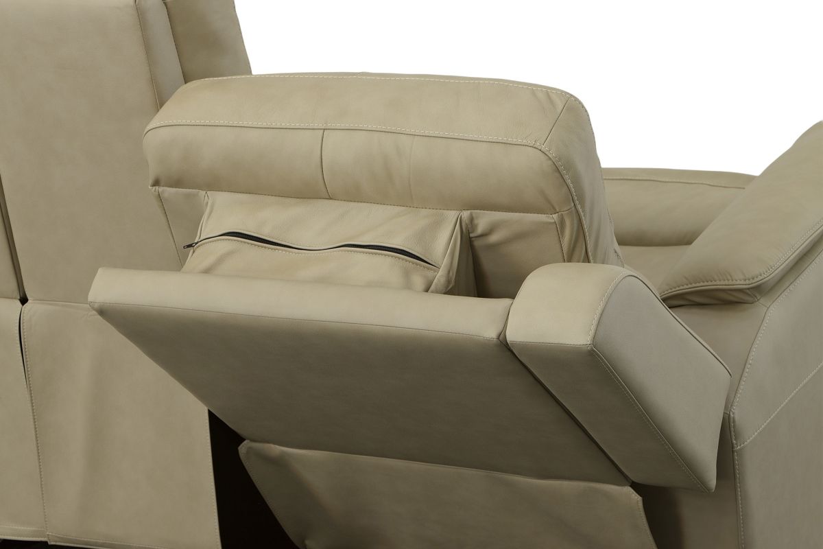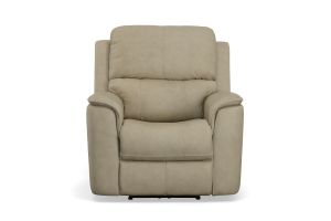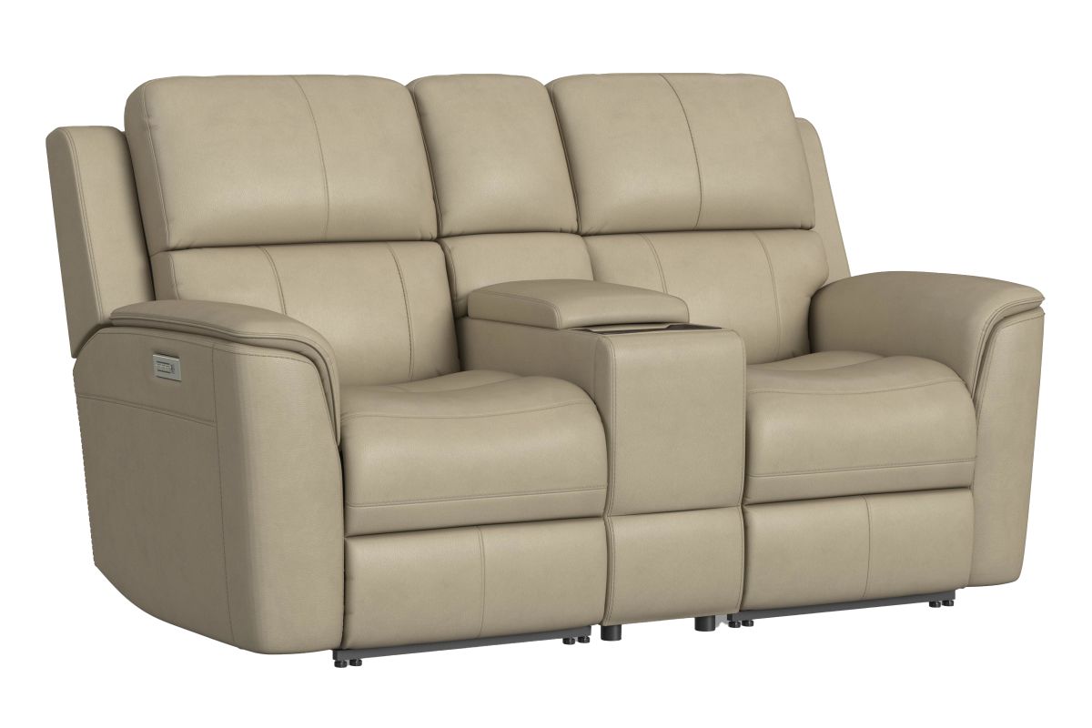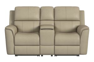 Treat yourself to a comfortable yet refined sitting experience with the Oliver leather power reclining loveseat with console and power headrests and lumbar. This generously scaled frame is upholstered in a sumptuous leather, and features contoured seats and padded arms with a unique sculptural shape and welt trim. The center console contains a storage compartment, wireless charging tray and pop-out dual cupholders. Power recline, headrest and lumbar control on both sides allows for customized comfort, and included USB ports provide convenient device charging. The Zero Gravity recline technology gives the feeling of weightlessness while Flexsteel's patented Blue Steel Spring provides lasting seat support.