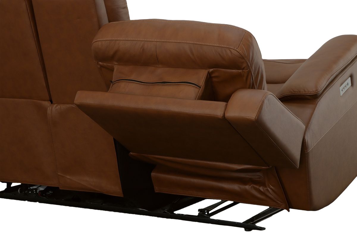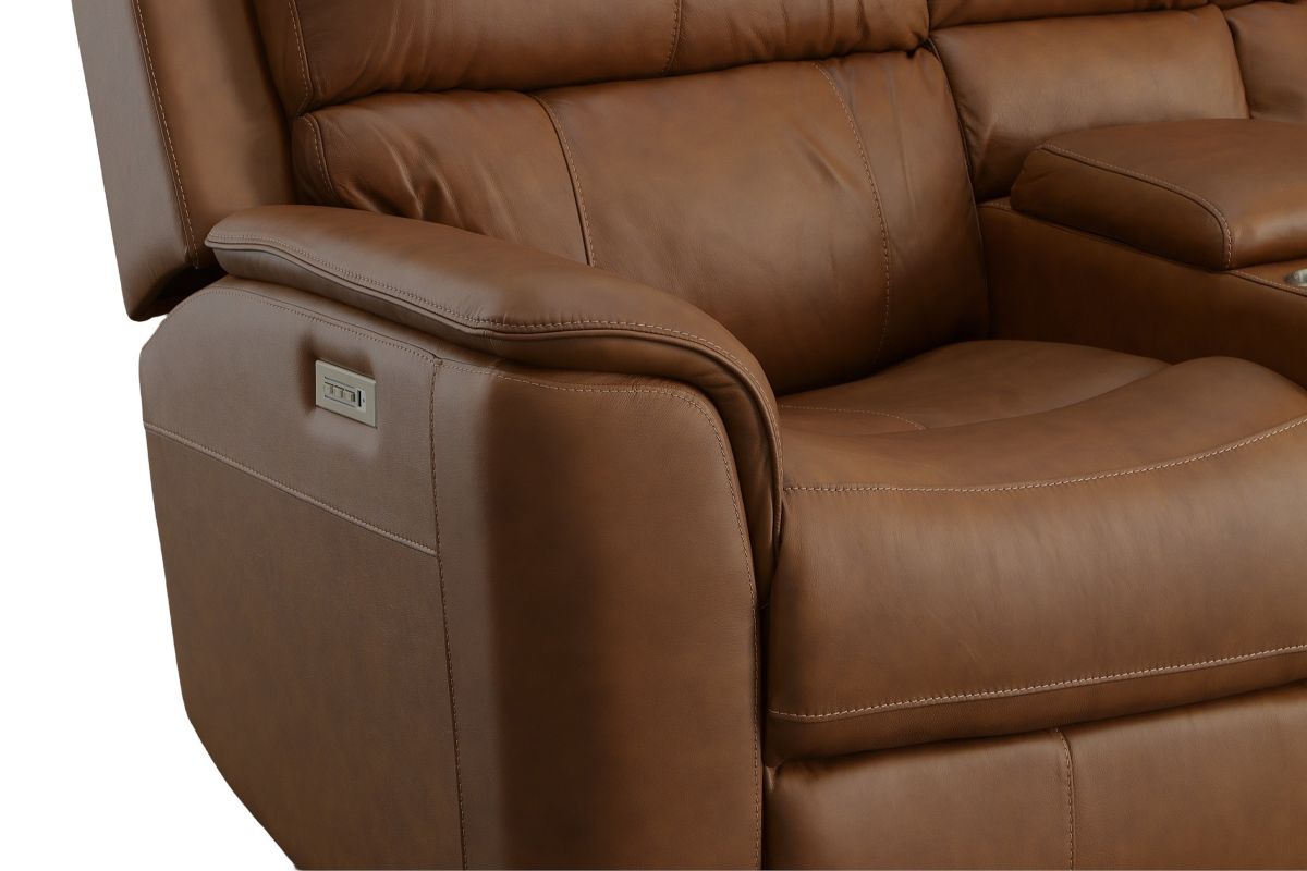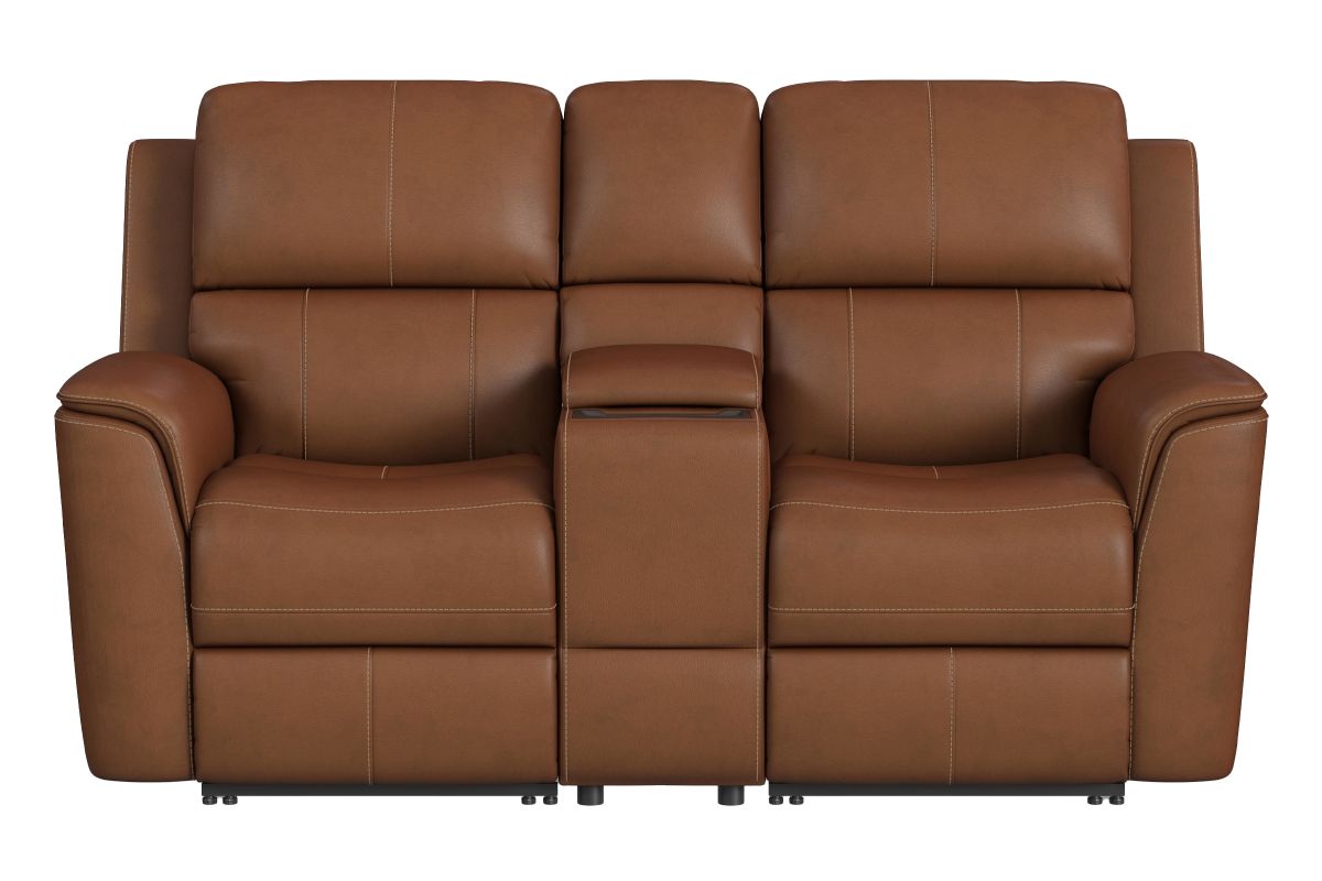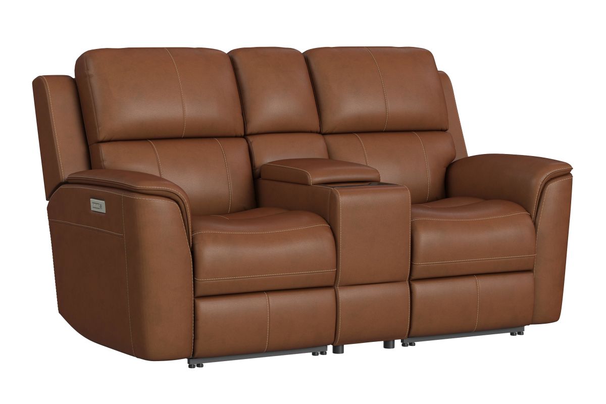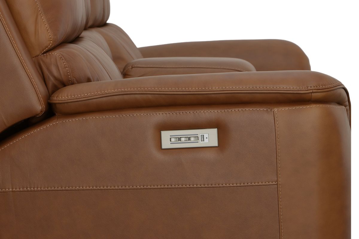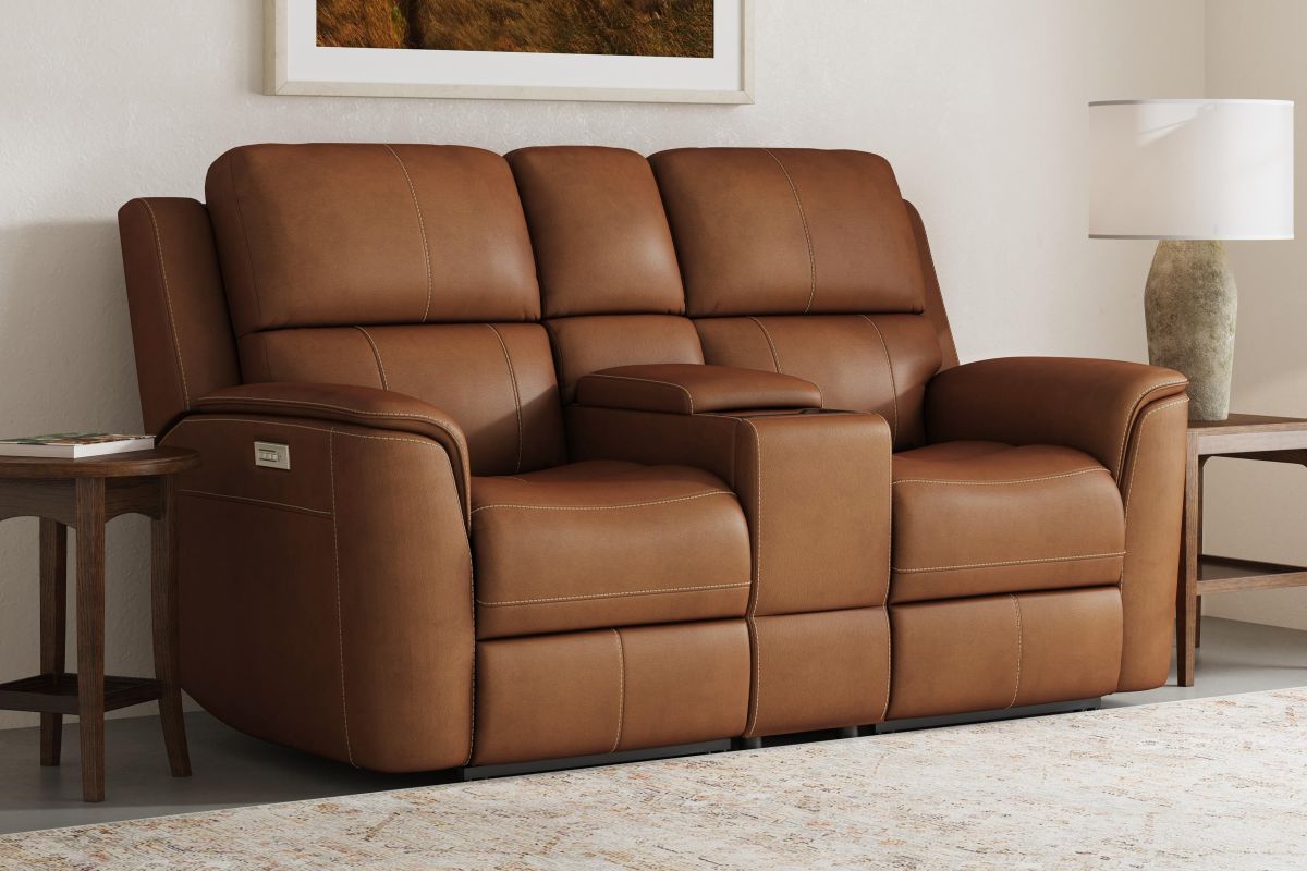 Treat yourself to a comfortable yet refined sitting experience with the Oliver leather power reclining loveseat with console and power headrests and lumbar. This generously scaled frame is upholstered in a sumptuous leather, and features contoured seats and padded arms with a unique sculptural shape and welt trim. The center console contains a storage compartment, wireless charging tray and pop-out dual cupholders. Power recline, headrest and lumbar control on both sides allows for customized comfort, and included USB ports provide convenient device charging. The Zero Gravity recline technology gives the feeling of weightlessness while Flexsteel's patented Blue Steel Spring provides lasting seat support.