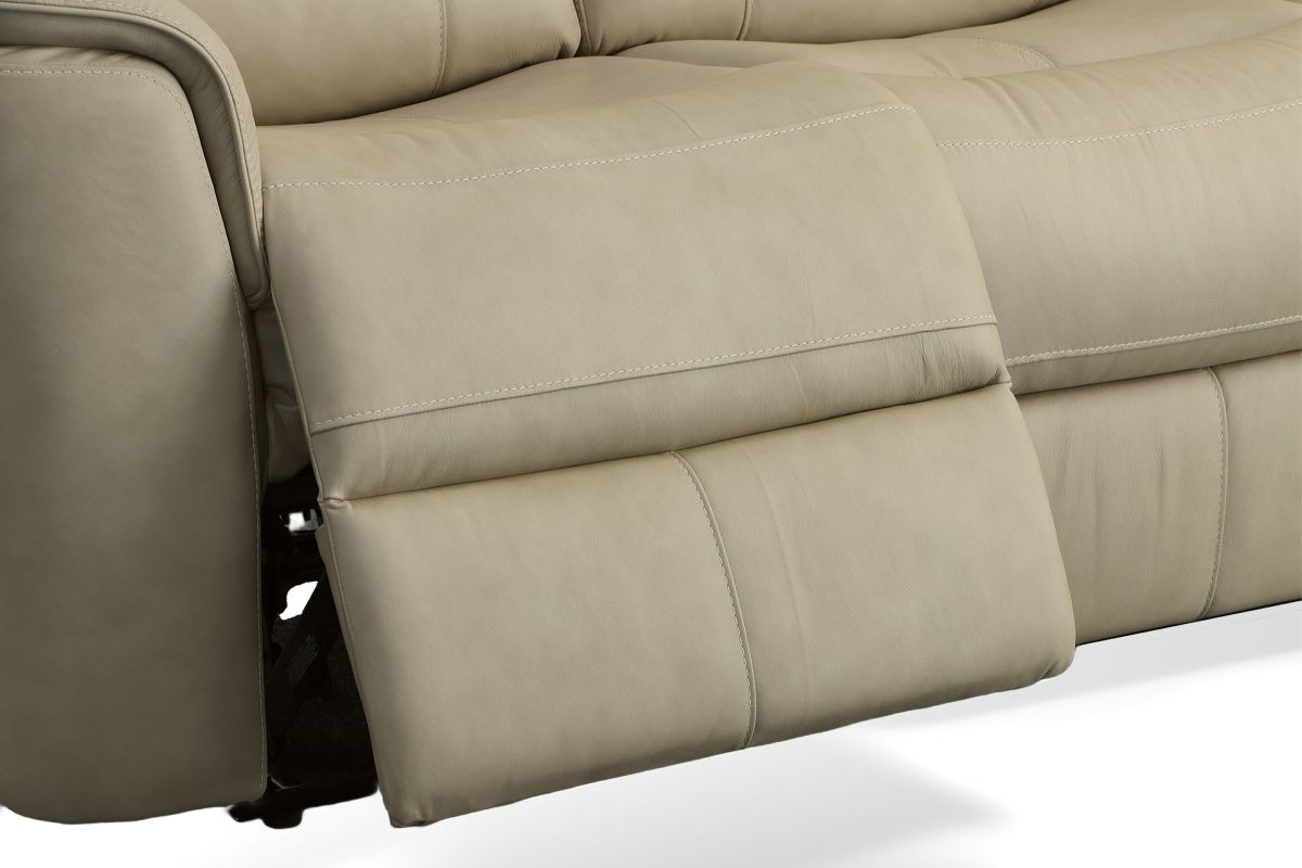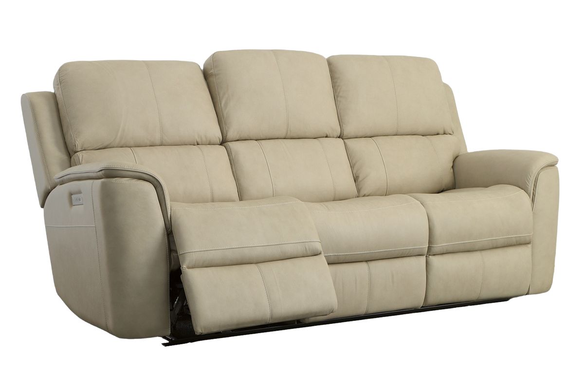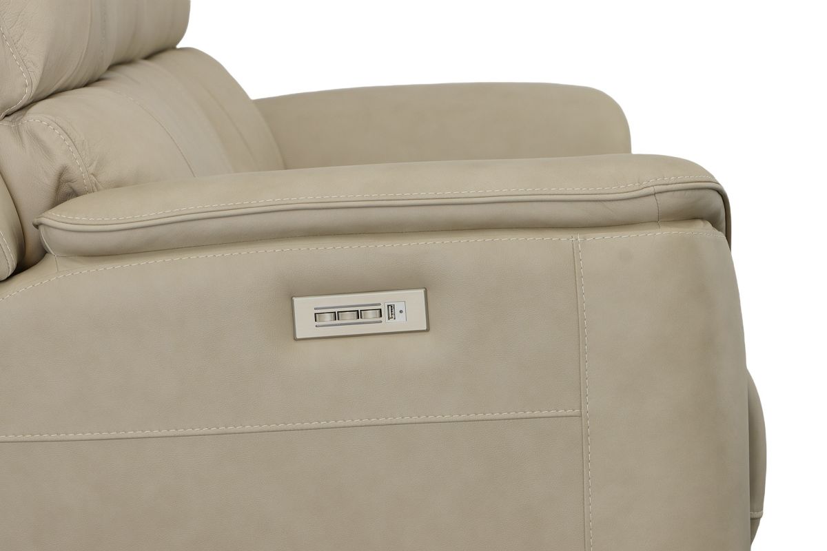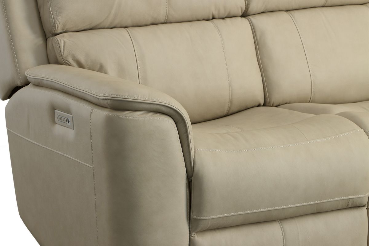 Treat yourself to a comfortable yet refined sitting experience with the Oliver leather power reclining sofa with power headrests and lumbar. This generously scaled frame is upholstered in a sumptuous leather, and features contoured seats and padded arms with a unique sculptural shape and welt trim. Power recline, headrest and lumbar control on each end seat allows for customized comfort, and included USB ports provide convenient device charging. The Zero Gravity recline technology gives the feeling of weightlessness while Flexsteel's patented Blue Steel Spring™ provides lasting seat support.