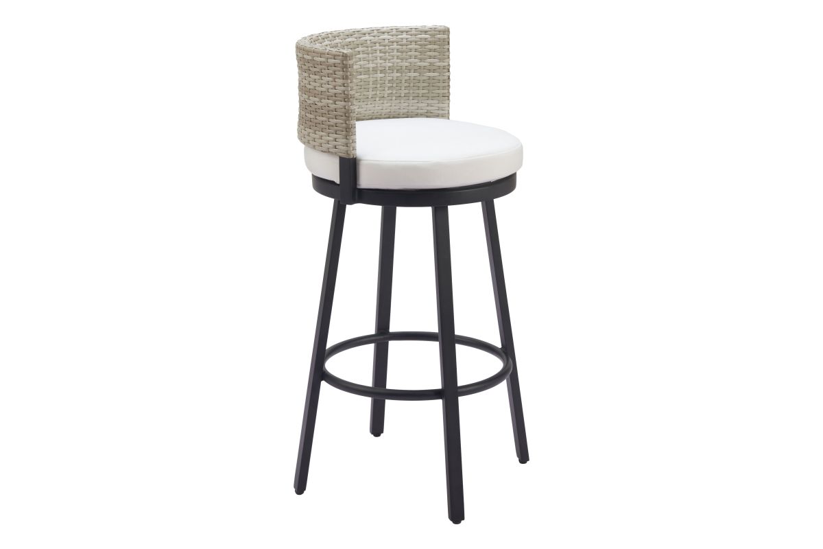 Introducing the Midnight Wave Barstool — a harmonious blend of style and function designed to elevate your outdoor bar or kitchen island. Crafted with a sturdy aluminum frame and featuring plush olefin fabric seating, this barstool offers both durability and comfort for your outdoor seating needs. Crafted with precision, the Midnight Wave Barstool seamlessly complements various outdoor settings, whether it's your home patio, a seaside bar, or any outdoor space in need of modern elegance. Its robust aluminum frame ensures long-lasting quality, making it a reliable choice for any alfresco seating arrangement. Enhance your outdoor seating experience with the Midnight Wave Barstool. Whether you're sipping cocktails with friends or adding a chic touch to your outdoor establishment, this barstool combines form and function to provide a comfortable and stylish seating solution. Embrace modern outdoor design with the Midnight Wave Barstool. Assembly Required.