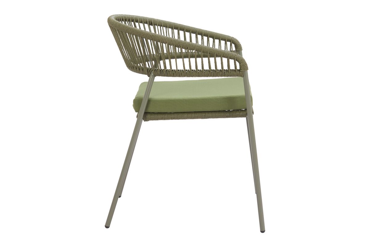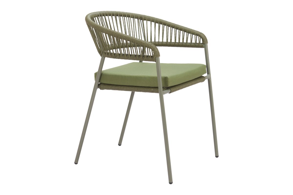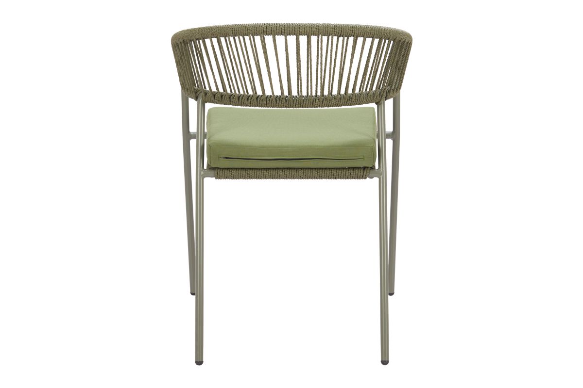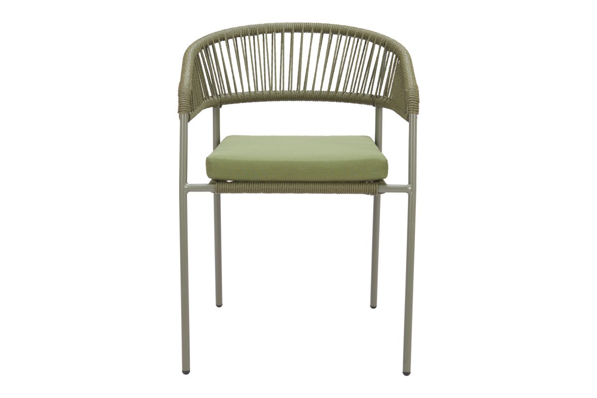 The Skye Dining Chair in Green brings a touch of modern elegance to any space. Its green tone and construction from 100% olefin outdoor fabric, powder coated steel, and 100% polyethylene synthetic rattan weave ensure it stands out in any room. Ideal for hospitality use, it adapts effortlessly to various settings.