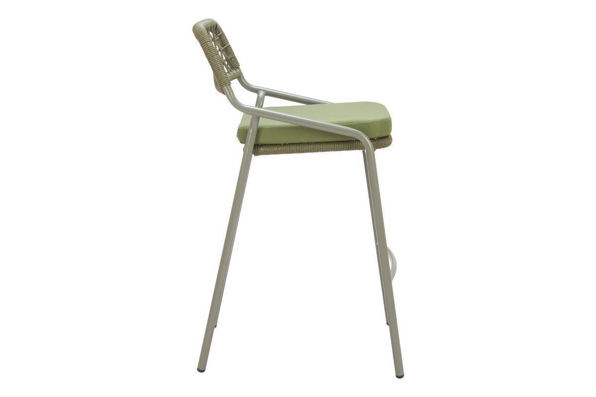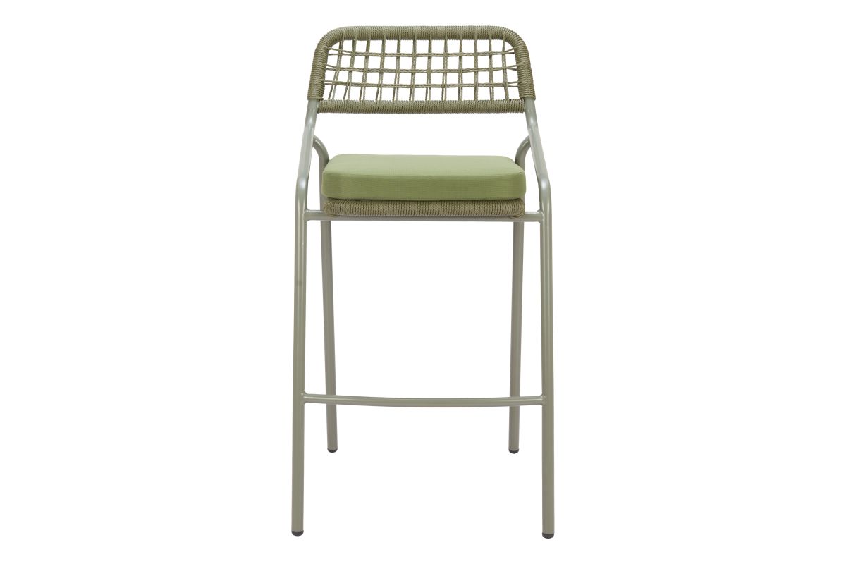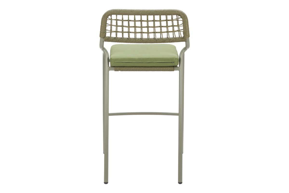 With its green finish and premium construction of 100% olefin outdoor fabric, powder coated steel, and 100% polyethylene synthetic rattan weave, the Rio Barstool in Green is the epitome of modern design. Ideal for hospitality use, it makes a fitting addition to any space. No Assembly required.