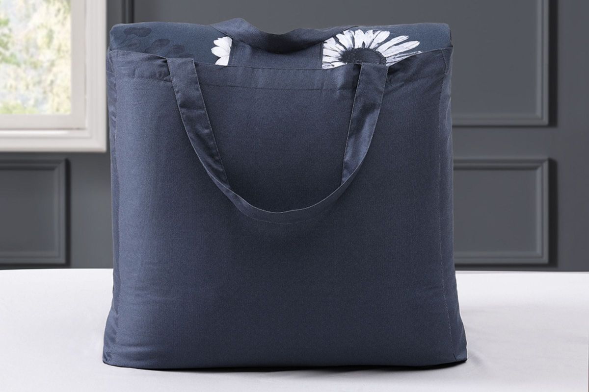 - Soft and inviting, the lovely floral pattern of the Bebejan Forget Me Not 5 Piece Comforter Set will lull you to sleep. The dark blue ground with tones of white and grey are classic for traditional, transitional or contemporary bedrooms. But if you are interested in changing the look of your room, just turn it to the reverse for a subtle, printed woven texture. The 5 piece set includes a 100% cotton sateen reversible comforter, 2 reversible zipper shams with an embroidered oblong pillow and a printed square pillow.