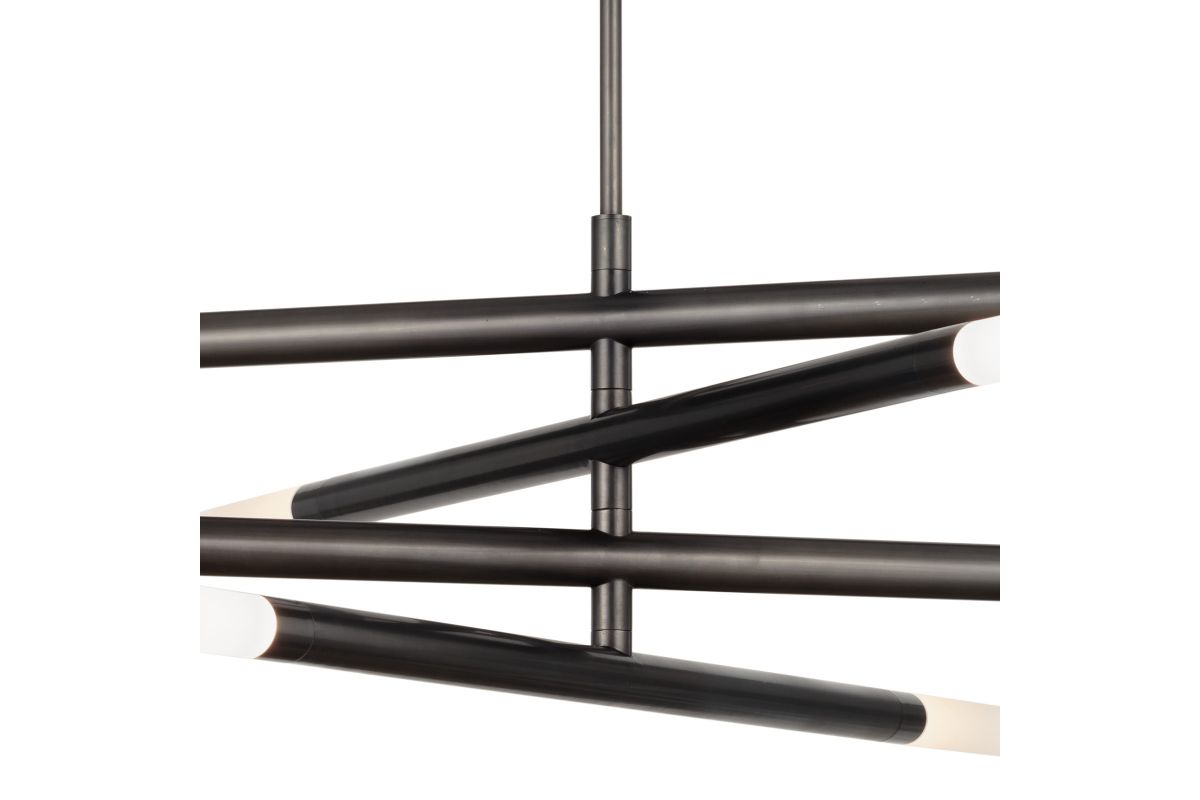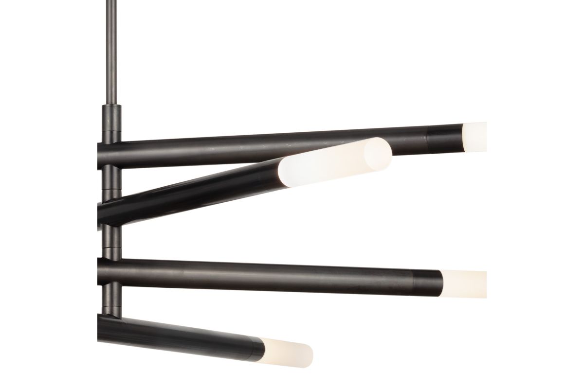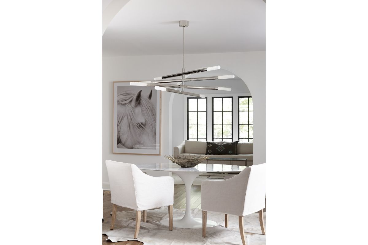 Four arms swivel around a center point on our modern, linear Wick Chandelier. Create a unique, dynamic design in your modern loft, entryway, or over a dining table. Wick's frosted acrylic bulb covers add the perfect amount of diffused light to your space. Assembly is required upon delivery.
