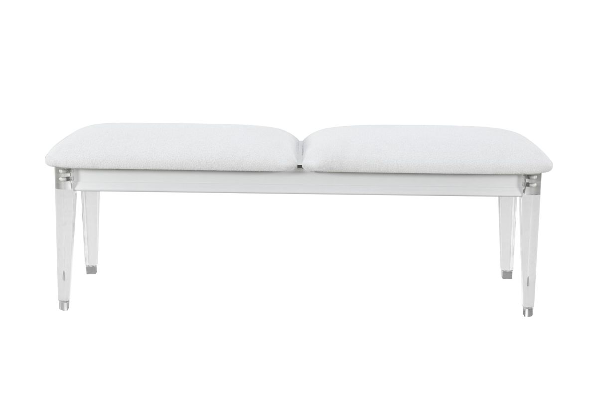 Introducing the Apollo Bench, a stunning fusion of contemporary design and luxurious comfort. With its sleek, minimalist profile and sculptural acrylic legs, this bench adds an airy sophistication to any room. The dual-cushion top, upholstered in a soft, cloud-like fabric, offers inviting comfort while maintaining a crisp, tailored silhouette. Whether placed at the foot of your bed, in an entryway, or as a chic accent in your living space, the Apollo Bench transforms functional seating into a statement of style. Its transparent base creates a floating illusion, making it the perfect piece for modern interiors that value both form and function. Bring home the Apollo Bench and discover a new standard of contemporary elegance — where beauty meets versatility, and every detail is designed to shine. Assembly Required.
