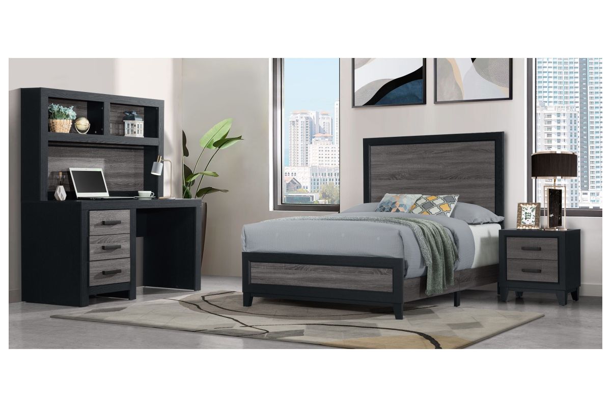 With its urban farmhouse design, the best of farmhouse and urban living combine to create an upscaled farmhouse appearance. The case pieces are black with rustic grey wood inlay. In addition to the two-tone design, the metal hardware completes the mixed media look and adds a modern flair. Assembly Required.