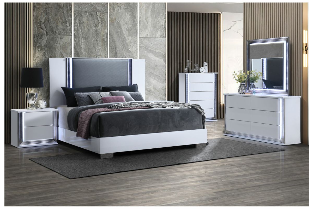 Introducing the Ylime Collection by Global Furniture USA – a stunning addition to any bedroom. Crafted with a sleek, deco modern design, this collection features rich chrome accents on all pieces and LED accent lighting. The real showstopper is the LED accents that add a touch of luxury and sophistication to the overall look. An available large matching vanity with stool makes this one of the most accommodating, complete solutions for your bedroom. Assembly Required.