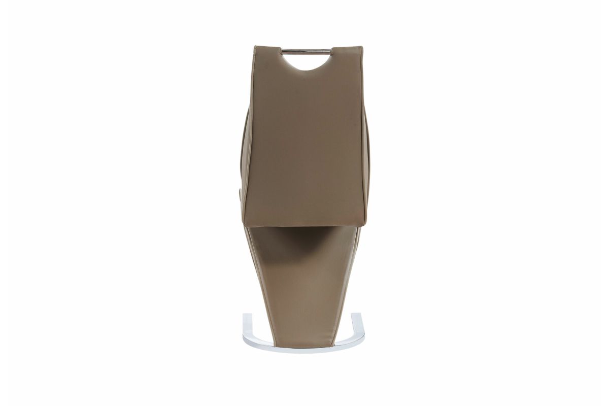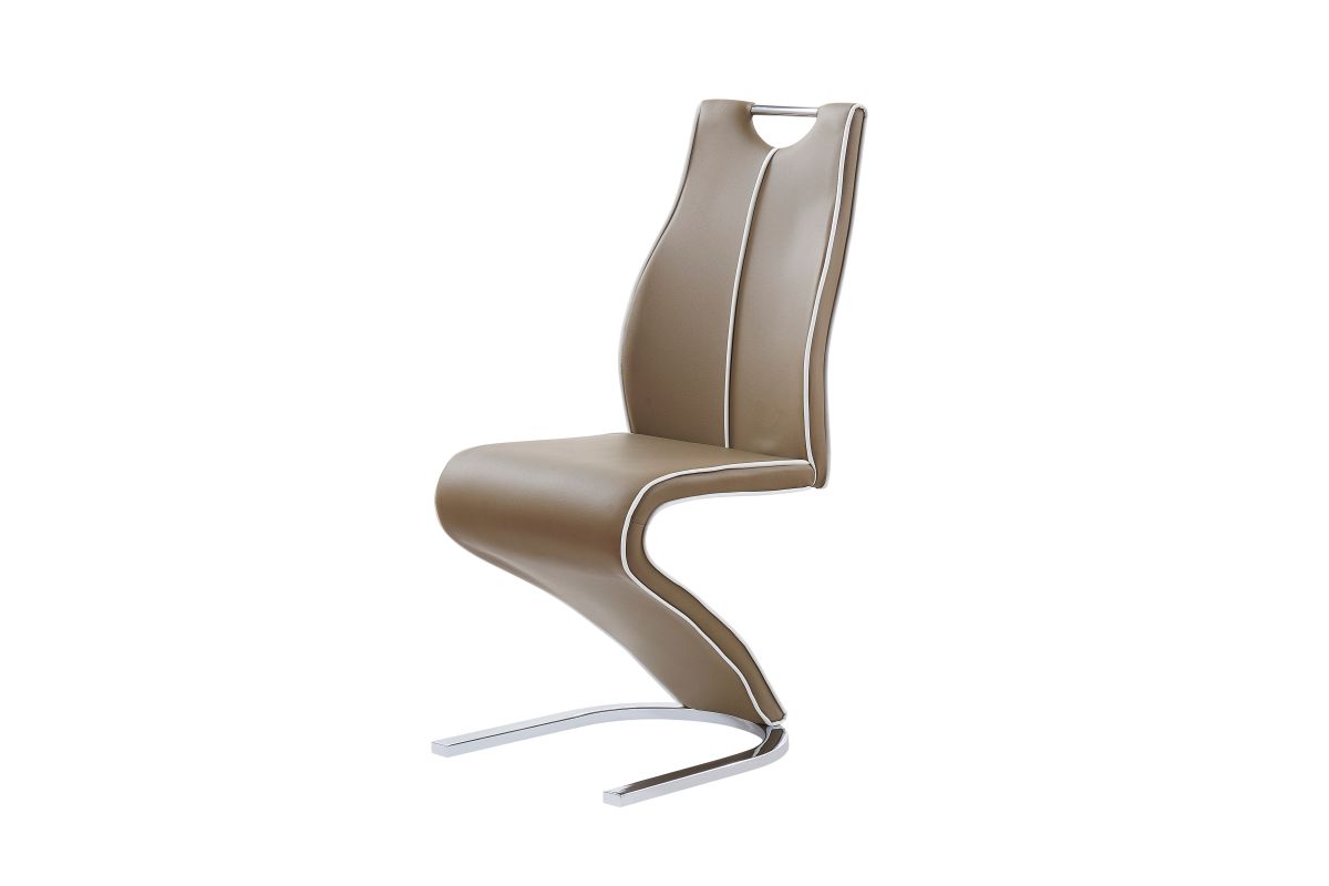 Ultra-modern in look and comfy in feel highlight this remarkable dining chair. The Z-style design of this chair is complemented by Cappuccino tones and metallic base and seat back handle, adding to the attractive and striking appearance of this seating. Design details include contrast Light Cappuccino welting along chair back and trim. Sturdy construction enables you to sit back in confidence. Quality craftsmanship in every facet ensures durability and long-lasting wear. Fun, eclectic and practical in equal measure, this dining chair will become the focal point of your kitchen/breakfast nook/eating area and is a great way to add style and appeal to your home. Requires Assembly.