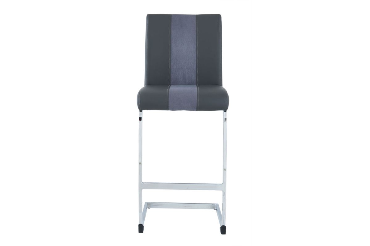 Perfect for your kitchen island or bar, this two-toned barstool will transform your room and add comfort and charm. This barstool is upholstered in tones of grey faux leather (PU) and fabric, providing an eye-catching and modern twist to traditional kitchen seating. Decorating possibilities are endless with the attractive tones of this piece. Additional design elements include a sleek style silver toned metal base and ample padding, continuing the delightful look and comfy feel of this seating. Quality craftsmanship in every facet of production ensures durability and long-lasting wear. For a stylish and modern take on kitchen or bar furnishings, this barstool is a can't miss choice in comfortable seating. Requires Assembly.