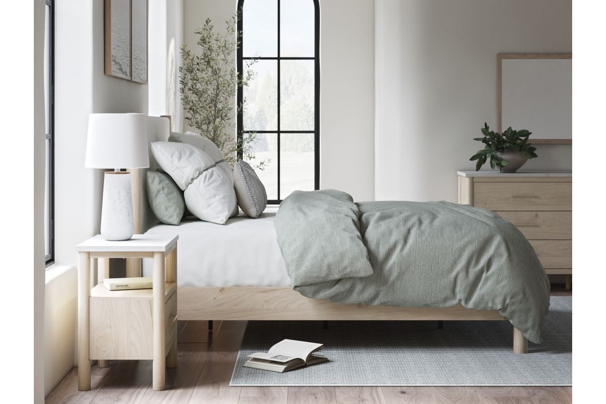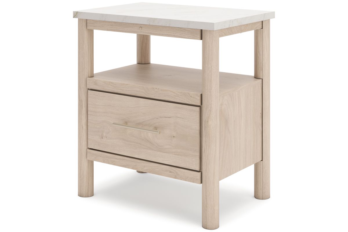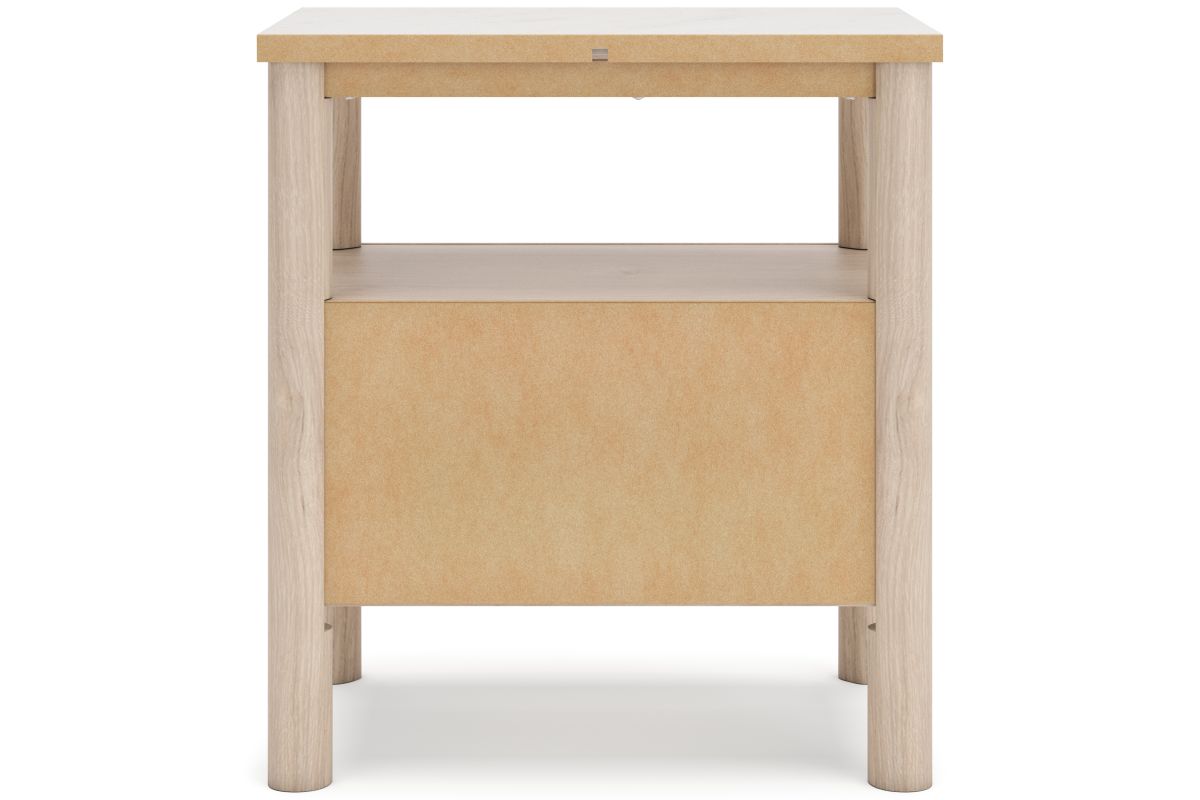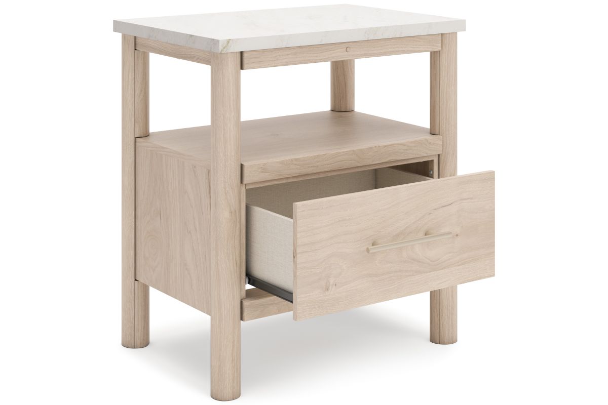 Transform your bedroom with this nightstand. With its clean lines and replicated marble top, it exudes a minimal and sophisticated boho style. Built-in lighting and charging capabilities add simplicity and ease to your everyday tasks. Tailor your space and create the perfect environment for sweet dreams.