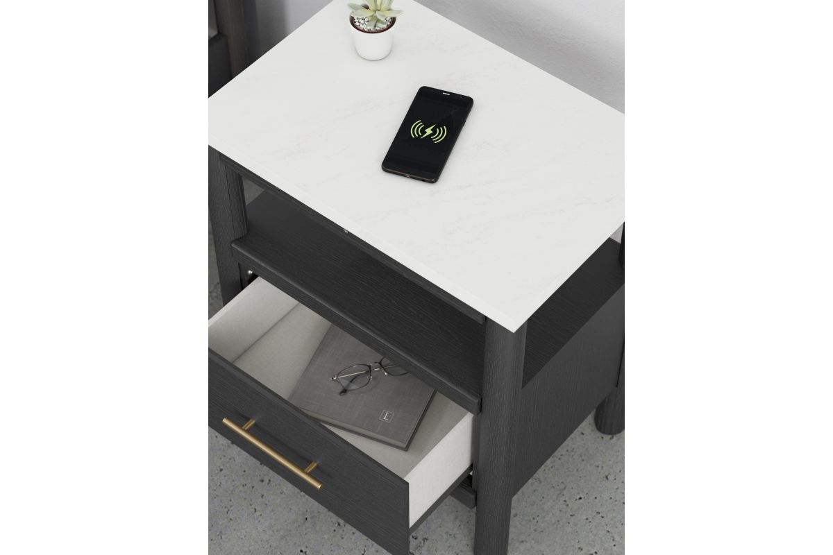This nightstand reflects your sophisticated approach to boho style. Crafted with both form and function in mind, its replicated marble top beautifully contrasts a matte black finish. The chic and convenient bedside companion offers ambient lighting, along with USB and wireless charging options. And the versatile design suits all-neutral spaces or blends with your favorite pops of color. It's inviting, yet posh. Luxe, yet laid-back. With this nightstand, your free-spirited vibe meets modern design.
