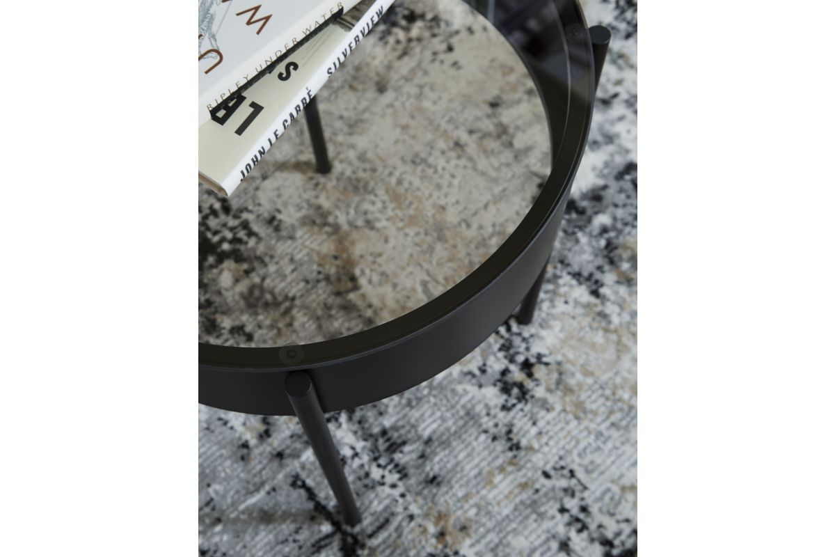 This accent table set combines metal and glass for a stylish and functional addition to your home. The tubular legs provide a sturdy base, while the matte black metal apron adds a touch of dramatic elegance. A black tempered glass tabletop offers both durability and a sleek aesthetic. With their modern design and high-quality craftsmanship, these tables are a wonderful display of great taste. Assembly Required.